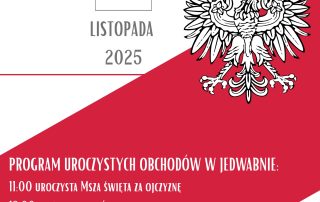 NARODOWE ŚWIĘTO NIEPODLEGŁOŚCI W JEDWABNIE Serdecznie zapraszamy mieszkańców gminy Jedwabno do wspólnego świętowania 107. rocznicy odzyskania przez Polskę niepodległości. 11 listopada 2025 r. (wtorek) - kościół św. [...]