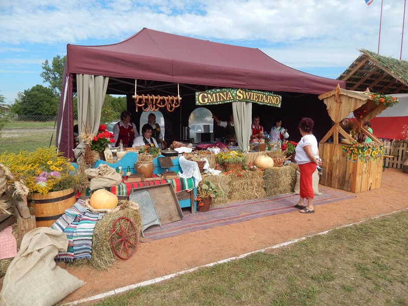 Dnia 30 sierpnia na terenie kompleksu rekreacyjno-sportowego w Świętajnie, odbyły się „Dożynki Powiatowe” – największe w roku święto rolników. Uroczystość rozpoczęła się od mszy św. w kościele pw. św. Andrzeja Boboli w Świętajnie. Podczas dziękczynnego nabożeństwa w intencji rolników, poświęcono wieńce dożynkowe, które zostały złożone przez przedstawicieli poszczególnych gmin całego powiatu szczycieńskiego. Msza św. była koncelebrowana przez prałata Edwarda Koperwasa ? proboszcza seniora, ks. kanonika Krzysztofa Witwickiego ? obecnego proboszcza parafii, a przewodniczył jej ks. prałat Józef Midura – Archidiecezjalny Duszpasterz Rolników. Starostowie tegorocznych dożynek powiatowych – Pani Marzena Trzcińska oraz Pan Mieczysław Pawelczyk, złożyli na ręce proboszcza chleb i bukiet dożynkowy, przygotowany z tegorocznych plonów, prosząc o ich poświęcenie. Po uroczystej mszy św. barwny korowód z wieńcami ruszył spod kościoła na miejsce imprezy.