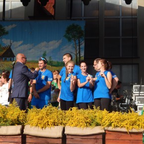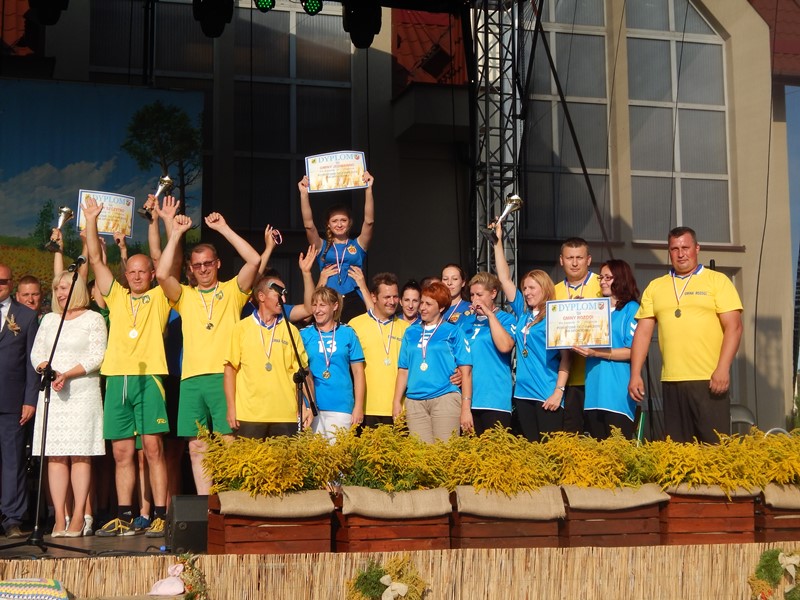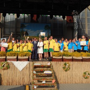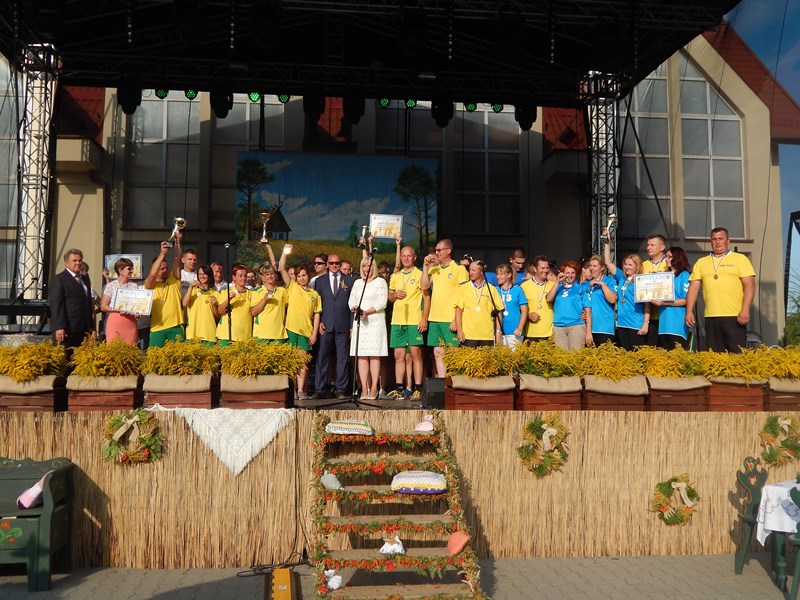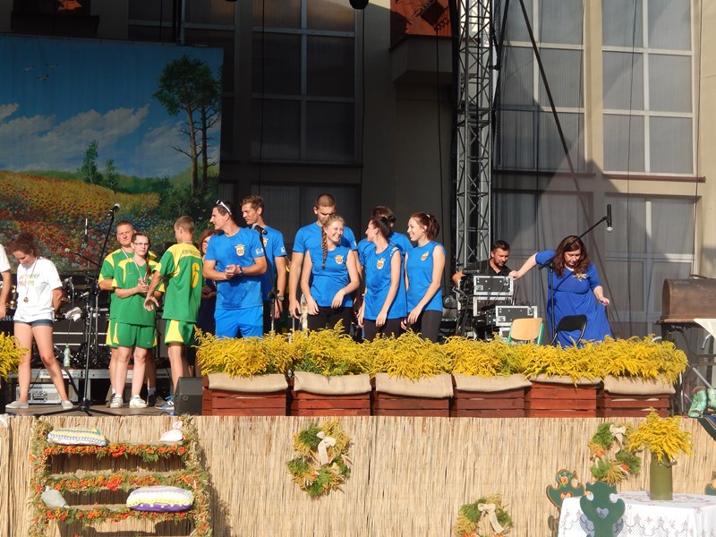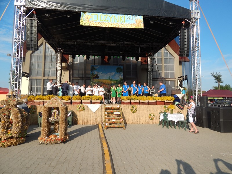 W części oficjalnej Wójt Alicja Kołakowska wraz ze Starostą Jarosławem Matłachem przywitali ciepłymi słowami zaproszonych gości oraz wszystkich zgromadzonych. Podziękowano i złożono słowa najwyższego uznania dla wszystkich rolników, za tegoroczne plony, trud pracy i tak liczną obecność na dożynkach. Poświęconym chlebem symbolizującym urodzaj i dostatek, szacunek i oddanie, częstowali wszystkich zgromadzonych. Na scenie nie zabrakło występu lokalnego chóru „Pasjonata” oraz dzieci i młodzieży z Fundacji „Kreolia Kraina Kreatywności”, przygotowanych przez Panią Joannę Gawryszewską ? prezesa Fundacji. Podczas Święta Plonów odbył się konkurs na najładniejsze stoisko gminne i wieniec. Jury w składzie: Renata Domżała, Jadwiga Grzegorczyk, Andrzej Zawrotny i Barbara Dyspolska, mieli niełatwe zadanie, ale po prawie dwugodzinnej naradzie ogłosili wyniki.