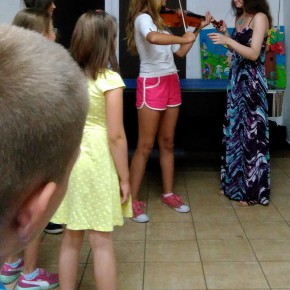 Pani Elżbieta Sandel nie tylko wspaniale zagrała (J. S. Bach, V. A. Mozart, utwory współczesne: The Beatles Yesterday, muzyka filmowa: Ojciec Chrzestny i Zapach kobiety), ale również opowiadała zebranym o wykonywanych utworach, a także (ku uciesze wszystkich!) pozwoliła każdemu chętnemu spróbować gry na skrzypcach