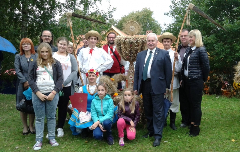 Prezentację wieńca przygotowało Koło Gospodyń Wiejskich w Szuci we współpracy z Zespołem Pieśni i Tańca Jedwabno. Akompaniował przy tym Pan Waldemar Ciukszo.