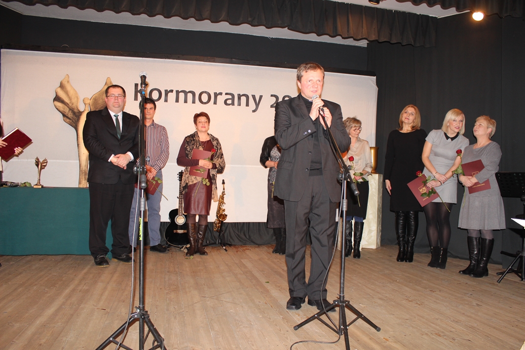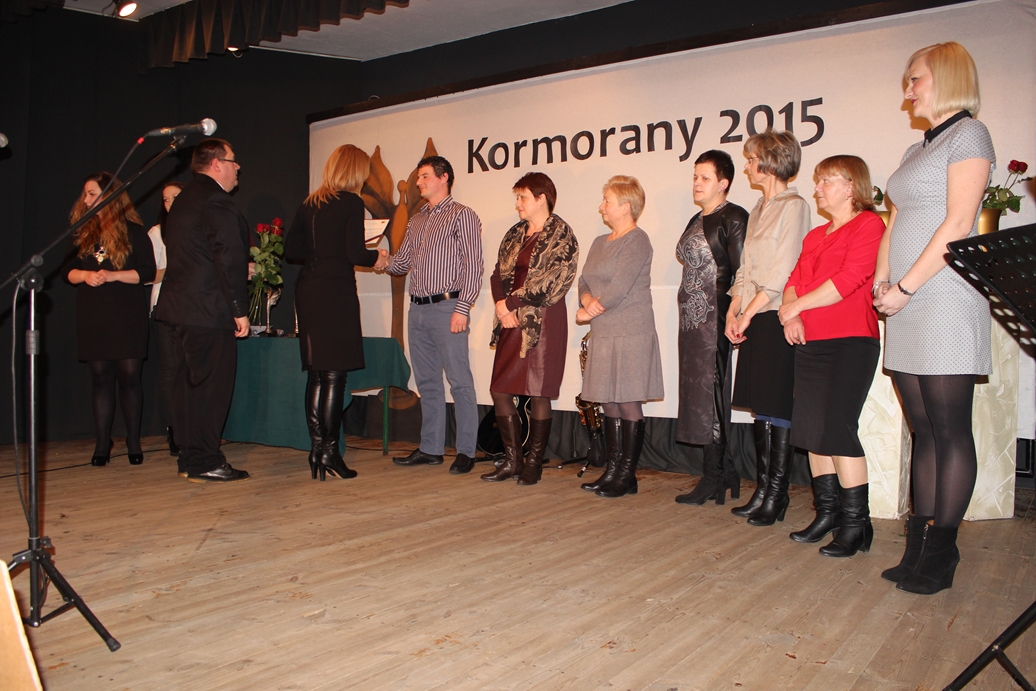 Dnia 23.01.2016 roku odbyła się uroczystość wręczenia podziękowań i statuetek ?Kormorany 2015? osobom i instytucjom, które w szczególny sposób włączały się w inicjatywy kulturalne organizowane na rzecz Gminy Jedwabno. Podziękowania ?Kormorany 2015? wręczone zostały w dwóch kategoriach: Sponsor oraz Udzielający Wsparcia. W kategorii SPONSOR podziękowania otrzymały wyróżnione osoby bądź instytucje, które finansowo wspierały działania organizowane na rzecz Gminnego Ośrodka Kultury i Gminy Jedwabno. W kategorii UDZIELAJĄCY WSPARCIA podziękowania otrzymały wyróżnione osoby, które poświęciły swój czas wolny pomagając w organizacji i przeprowadzeniu imprez czy przygotowując potrawy, które promowały pozytywny wizerunek Gminy. Jak co roku, już tradycyjnie, przyznane zostały w tych dwóch kategoriach statuetki ?Super Kormoran 2015?, które są szczególnym uhonorowaniem Sponsorów i Udzielających Wsparcia. W tym roku przyznana została jeszcze jedna statuetka ?Super Kormorana?, jako wyróżnienie dla Czesława Nowakowskiego za inicjatywę i prowadzenie Pleneru artystycznego w Czarnym Piecu. Nagrody i statuetki we wszystkich kategoriach wręczali: Elżbieta Brzóska ? przewodnicząca Rady Gminy Jedwabno, Sylwia Jaskulska – Członek Zarządu Urzędu Marszałkowskiego Województwa Warmińsko-Mazurskiego w Olsztynie, Sławomir Ambroziak Wójt Gminy Jedwabno oraz Jerzy Pałasz Dyrektor Gminnego Ośrodka Kultury w Jedwabnie. Jako dodatkowy punkt programu odbył się wernisaż wystawy ?Czarny Piec 2015?. Wszystkim obecnym wieczór umilił koncert Joanny Gawryszewskiej z zespołem.