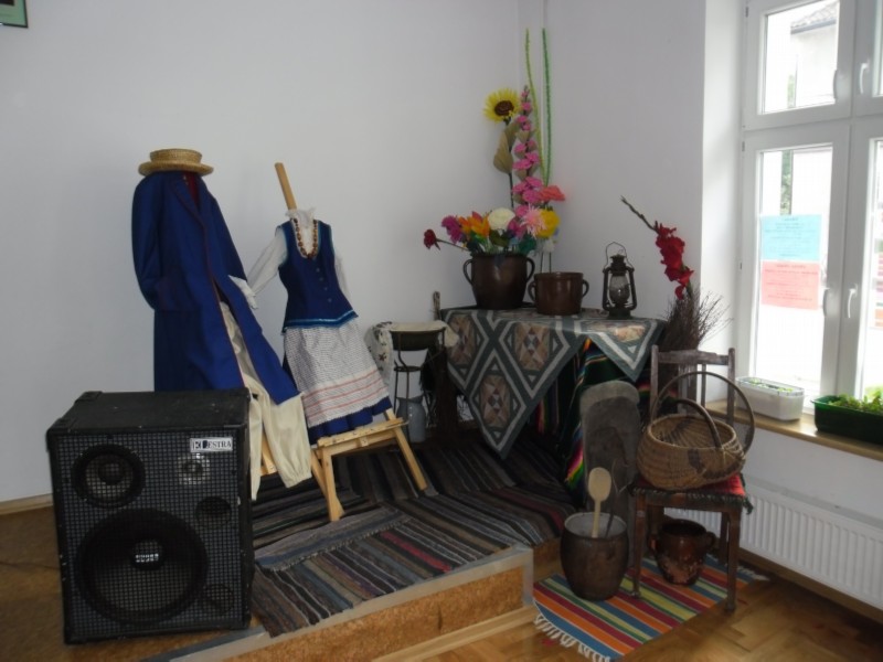 Eksponaty do kącika mazurskiego użyczyła Elżbieta Brzóska oraz Joanna Porycka ze Stowarzyszenia Kotowskie Centrum Aktywności Lokalnej ?Omulew?, która także zajęła się zaprojektowaniem niniejszej dekoracji.