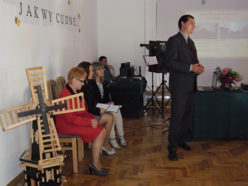 Następnym punktem spotkania była prezentacja multimedialna wykonana w ramach projektu edukacji regionalnej ?Jedwabno w fotografii dawniej i dziś?, której autorkami są Grażyna Szczepanek i Wanda Bojarska. Dużym zainteresowaniem cieszyła sie również kronika ze zdjęciami budynków Jedwabna dawniej i dziś oraz prace plastyczne grupy dzieci z klas IIIa i Vb z Zespołu Szkół w Jedwabnie.