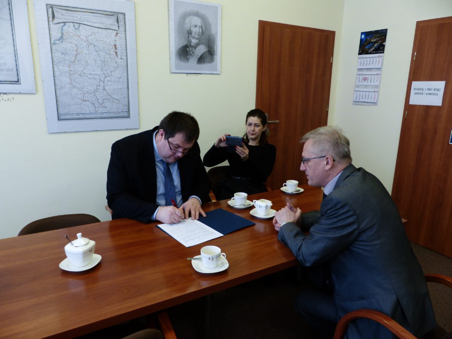 Rektor Uniwersytetu Warmińsko ? Mazurskiego w Olsztynie prof. dr hab. Ryszard Górecki i Wójt Gminy Jedwabno Sławomir Ambroziak podpisali porozumienie o współpracy Gminy Jedwabno z Uniwersytetem Warmińsko ? Mazurskim w zakresie dziedzictwa kulturowego i przyrodniczego a także jego ochrony i wykorzystania dla celów publicznych. W imieniu Uniwersytetu zadania wynikające z zawartego porozumienia będą wykonywać Wydział Humanistyczny i Wydział Biologii i Biotechnologii. Wymienione Wydziały powołały wcześniej wspólną jednostkę naukową pod nazwą Centrum Badań nad Dziedzictwem Kulturowym i Przyrodniczym UWM w Olsztynie, która prowadzi nowy kierunek studiów w postaci dziedzictwa kulturowego i przyrodniczego. W ramach zawartego porozumienia Uniwersytetu Warmińsko ? Mazurskiego z Gminą Jedwabno będą realizowane na terenie Gminy Jedwabno wspólne przedsięwzięcia badawcze i upowszechniające wiedzę o dziedzictwie kulturowym i przyrodniczym a także konferencje naukowe, z kolei sami studenci tego kierunku będą realizowali u nas nieodpłatne praktyki studenckie. Ponadto przedstawiciel Gminy Jedwabno wejdzie w skład Rady Programowej kierunku dziedzictwo kulturowe i przyrodnicze. Studenci tego kierunku mają nie tylko posiadać umiejętność poznania i zinwentaryzowania lokalnego dziedzictwa kulturowego i przyrodniczego ale także potrafić przekuć je w atrakcyjne lokalne produkty turystyczne i kulturowe, promujące dany region. Gmina Jedwabno ze względu na swe walory przyrodnicze i bogactwo kulturowe oraz historyczne jest idealnym miejscem na praktyczną naukę dla studentów tego kierunku. Dlatego też kadra naukowa UWM zdecydowała się na podjęcie współpracy z naszą Gminą. Z kolei dla Gminy Jedwabno zawarte porozumienie przynosi konkretne i wymierne korzyści w postaci naukowego wsparcia przy ochronie i promowaniu naszych lokalnych bogactw przyrodniczych i kulturowych a także naszej bogatej historii. Pozwoli to również na stworzenie szeregu lokalnych materiałów i produktów turystycznych opartych o dziedzictwo kulturowe i przyrodnicze Gminy Jedwabno. Przy podpisaniu umowy obecni byli główni animatorzy współpracy ze strony UWM dr Małgorzata Liszewska i dr Jacek Kowalewski oraz dziekan Wydziału Humanistycznego prof. Andrzej Szmyt. W trakcie rozmów przeprowadzonych po podpisaniu porozumienia ustalono już pierwsze wspólne przedsięwzięcia, które zostaną zrealizowane jeszcze w 2016 roku.