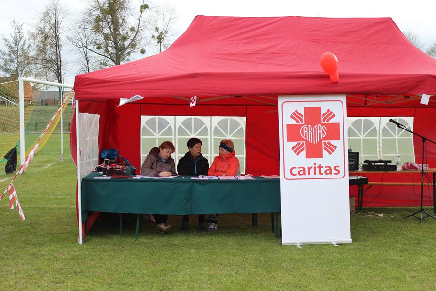 Najpierw w niedzielę 1 maja odbywała się impreza sportowa organizowana przez Parafialny Zespół Caritas przy Parafii Św. Józefa w Jedwabnie. Także i w tym roku IV Bieg Caritas ?W zdrowym ciele zdrowy duch? przyciągnął zwolenników zdrowego stylu życia oraz biegania nie tylko z terenu naszej gminy. Zawodnicy startowali w 18 kategoriach wiekowych począwszy od przedszkolaków do bez ograniczeń wiekowych. Zawody rozpoczęły się o godzinie 13:00. Otworzyli je Wójt Gminy Jedwabno Sławomir Ambroziak oraz Ksiądz Proboszcz Roman Lompa. Następnie swoje umiejętności taneczne zaprezentowali wolontariusze ze Szkolnego Koła Caritas. Nad prawidłowym przebiegiem zawodów czuwali nauczyciele z Zespołu Szkół w Jedwabnie oraz Ksiądz Proboszcz Roman Lompa, który prowadził całą imprezę. Dzięki Stowarzyszeniu Koła Gospodyń Wiejskich wszyscy kibice oraz zawodnicy mogli posilić się pyszną fasolką po bretońsku lub ciepłym gofrem.