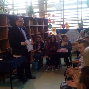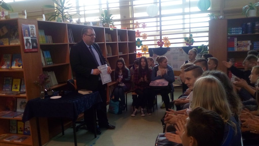 - Wójt Pan Sławomir Ambroziak przeczytał fragment książki ?MAZUR? Jerzego Woźniaka (dla uczniów gimnazjum)