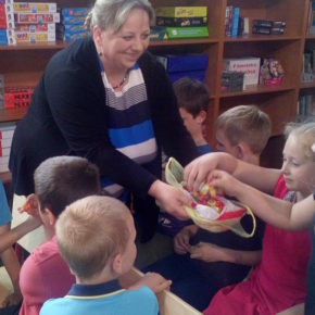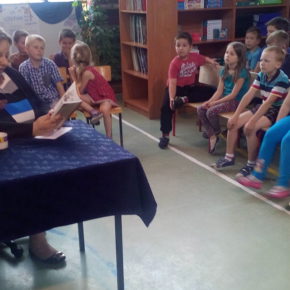 - Sekretarz Gminy Pani Jolanta Drężek przeczytała fragment książki ?WAKACJE W LADISPOLI? Agnieszki Olszanowskiej (dla uczniów klas IV-VI)
