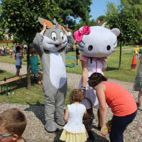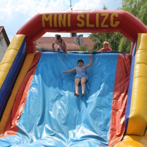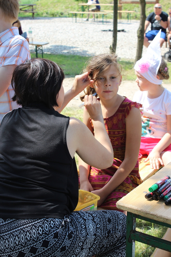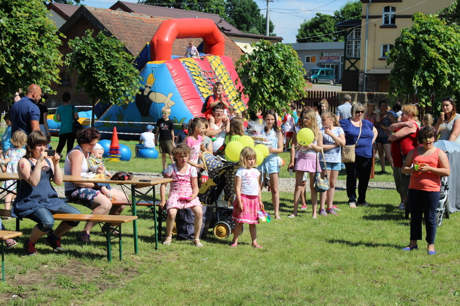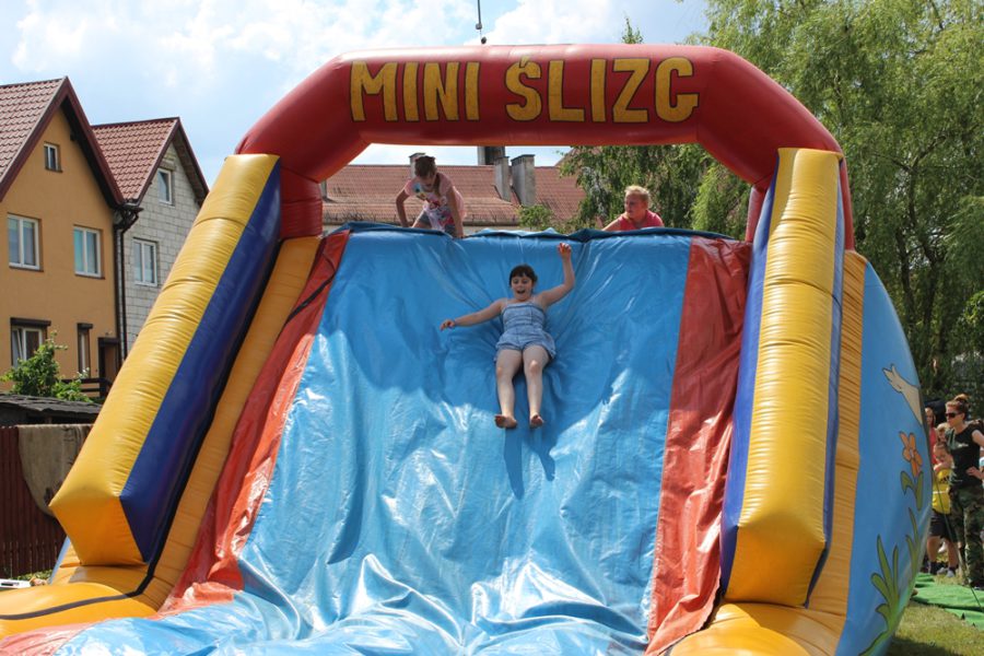 Dzień ten obfitował w wiele atrakcji. Bezpłatnie skorzystać było można z dmuchanej zjeżdżalni, kącika plastycznego, stoiska z łakociami, czy malowania twarzy. Dodatkowo Panie z Parafialnego Zespołu Caritas piekły dla dzieci gofry i częstowały ciastem. Na małej scenie swoje umiejętności wokalne zaprezentował zespół ?Wesołe Nutki? działający w Gminnym Ośrodku Kultury w Jedwabnie. Umiejętności sprawnościowe prezentowały ?Hulahopki? z Witowa. Cała zabawa rozpoczęła się przy akompaniamencie zespołu ,,Kuzyni Neptuna??ze Szczytna.