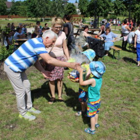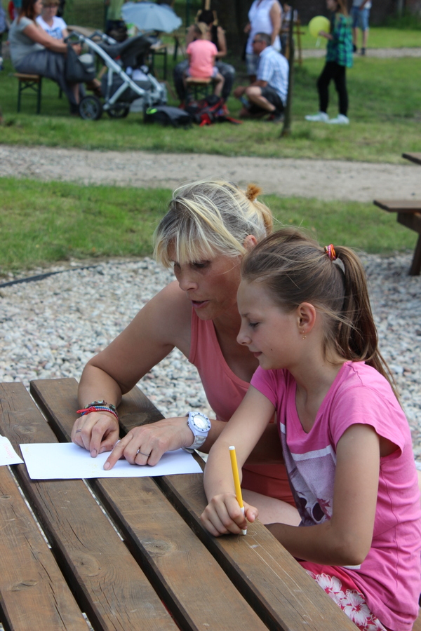 Zabawnym elementem zawodów dla rodziców był quiz wiedzy o rodzinie. W łącznej punktacji zwyciężyła Rodzina Orzechowskich. Na zakończenie festynu odbyły się konkurencje sprawnościowe dla dzieci, po których każdy malec wyszedł z parku z małym upominkiem. W rolę maskotek roznoszących cukierki podczas imprezy wcieliło się dwoje wolontariuszy z Zespołu Szkół w Jedwabnie. Dzień Rodziny okazał się bardzo udany, czego dowodem były uśmiechnięte buzie dzieci i ich rodziców.