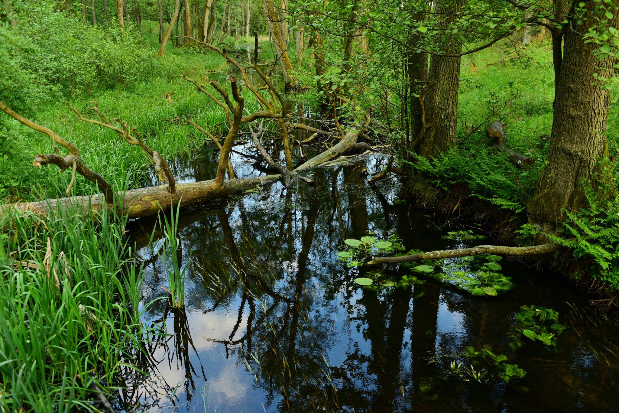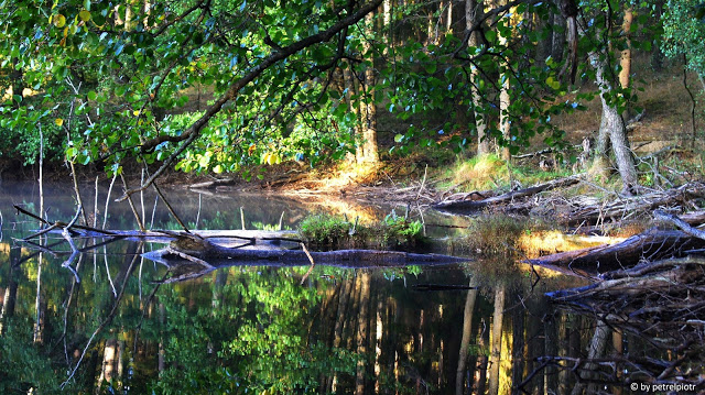 Rzeka Czarna bierze początek także w jednej z południowych zatoczek jeziora i płynie przez podmokłe komysze sosnowego boru, następnie pod szosą do Jedwabna, łączy się z strumieniem z Dłużka i wnika w rozległe mokradła sąsiadujące na zachodzie z jeziorkiem Priamy. Ptaki i zwierzęta mają spokój w rozległościach torfowych i puszczańskich komyszach. Tylko w kilku miejscach, z dróg otaczających ów zakątek, można dojść do punktów widokowych odsłaniających wczesną wiosną tajemniczy krajobraz.