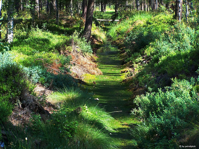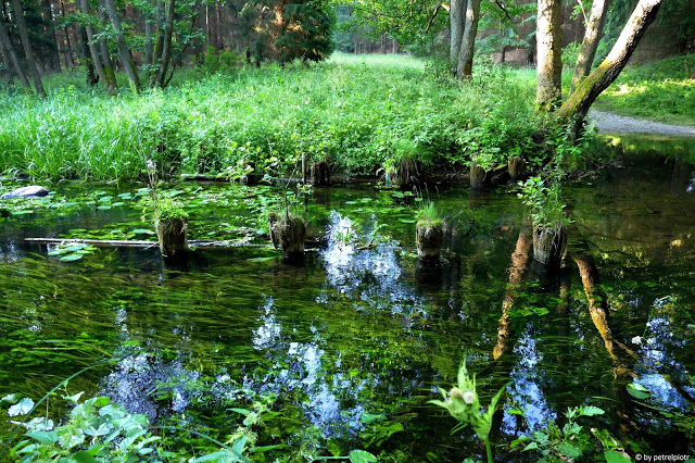 Najmniej oczywistym miejscem, skąd Czarna czerpie wodę, jest Wiercibaba. To niezwykłe uroczysko leży nieopodal północnej części jeziora Dłużek w cieniu starego boru, który zarasta wzniesienie morenowe wypiętrzone na prawie dwadzieścia metrów nad poziom jeziornej tafli. Schodząc z góry, trafimy na leśny dukt wiodący brzegiem tajemniczego torfowiska zarośniętego starymi sosnami, świerkami, osikami, brzozami, których gałęzie opanowały różne gatunki porostów z najbardziej frapującą brodaczką, zwisającą z gałązek delikatnymi brodami. Podszyt wypełniają krzaki łozy, kaliny; runo ? kępy bagna zwyczajnego i łany borówki bagiennej, dywany mchów wielu gatunków. Zbłądziwszy na wydeptane przez zwierzęta ścieżki, można zatracić się w zbieraniu jagód z krzaków sięgających pasa i wyżej. Intensywny zapach kwitnącego bagna tumani w ciepły majowy dzień. Gdzieś środkiem tego obszaru płynie niepozorny strumyk, wypełniając rów melioracyjny, dzisiaj kompletnie zarośnięty moczarką i innymi wodorostami. Południowe słońce z trudem przenika wnętrze bagiennego boru.