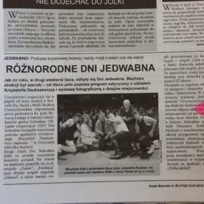 Podsumowanie ostatnich 2 tygodni oczami lokalnej prasy wygląda zadowalająco. W tygodnikach: Kurek Mazurski, Tygodnik Szczytno i Nasz Mazur ukazało się 16 materiałów o gminie Jedwabno, z tego 9 autorskich Urzędu Gminy Jedwabno.