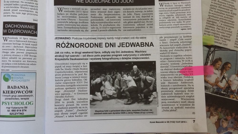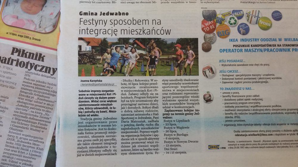 Promocja gminy Jedwabno to nie tylko strona internetowa i profile na portalu Facebook, to także tradycyjna forma przekazu, jaką jest lokalna prasa.