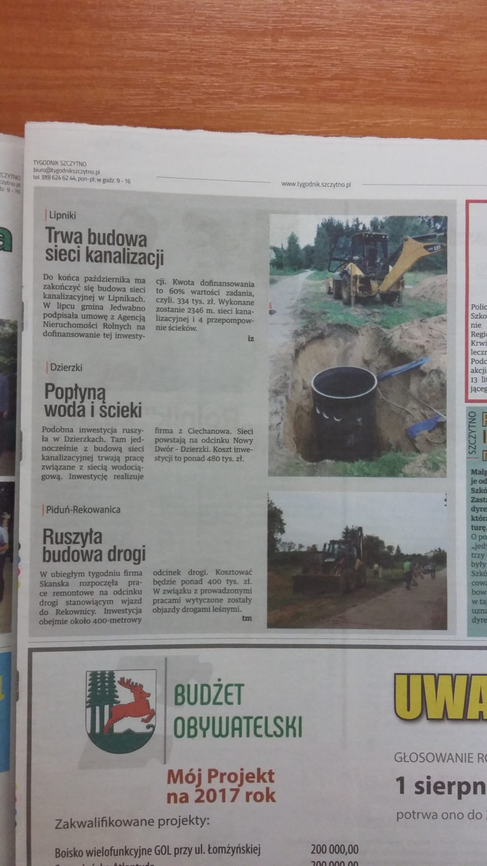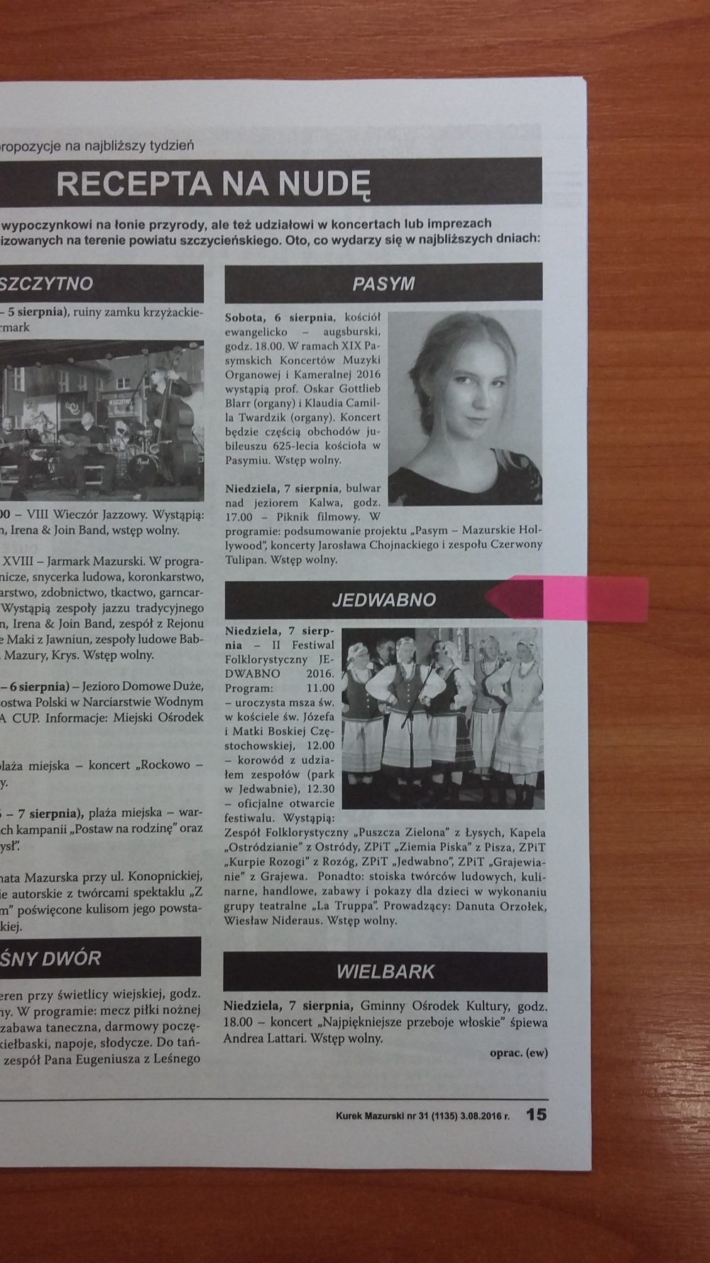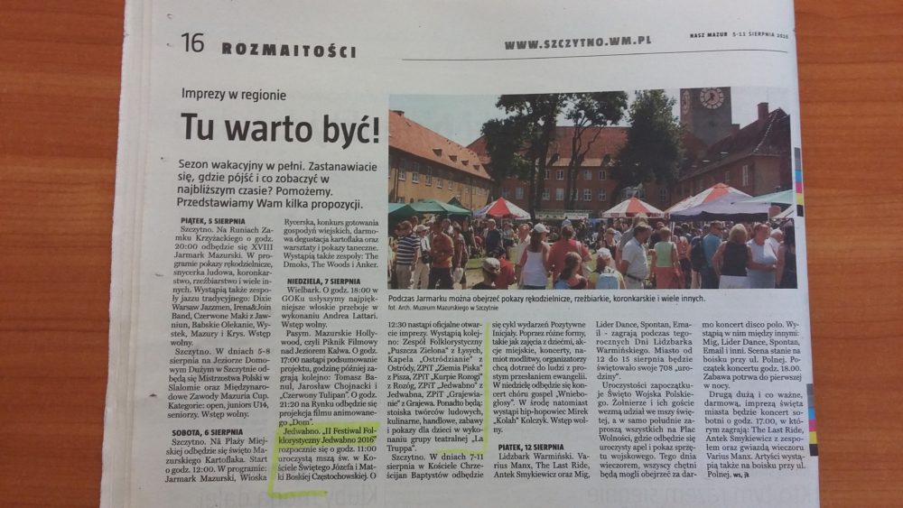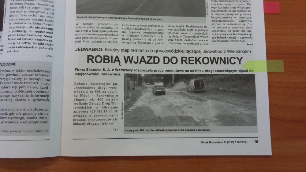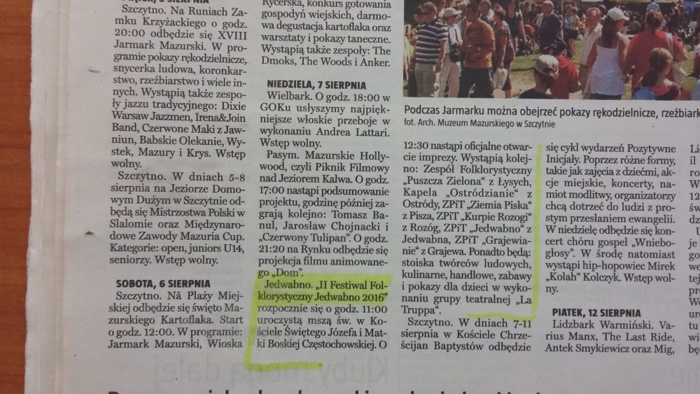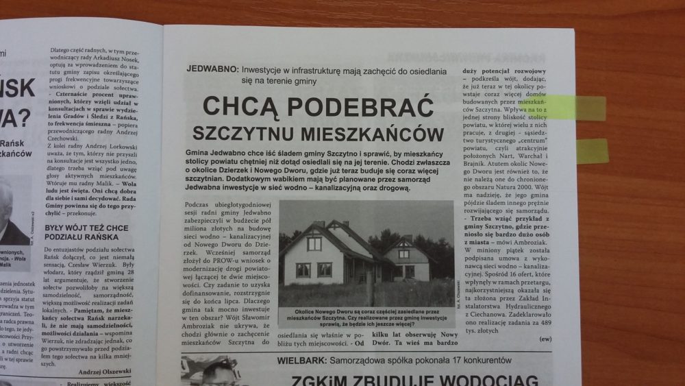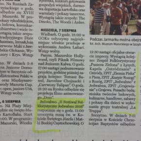 Podsumowanie kolejnych dwóch tygodni w Gminie Jedwabno – oczami lokalnej prasy: ?Tygodnik Szczytno?, ?Kurek Mazurski? oraz ?Nasz Mazur?.