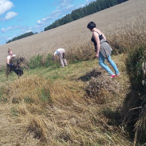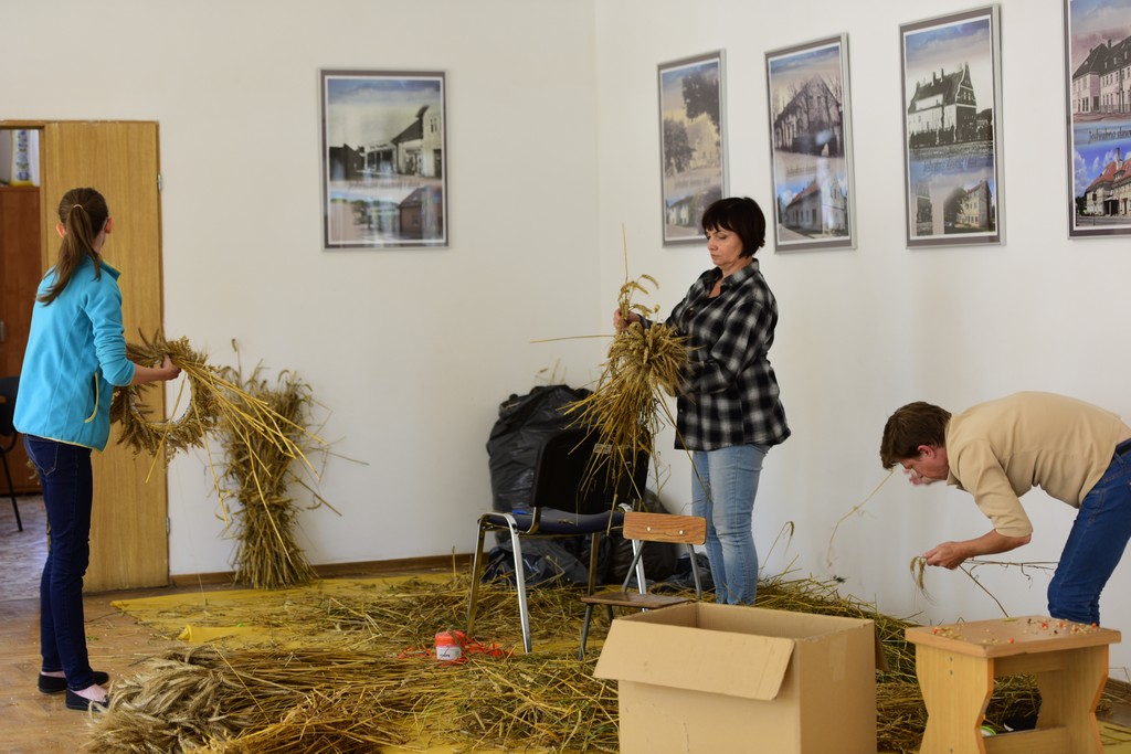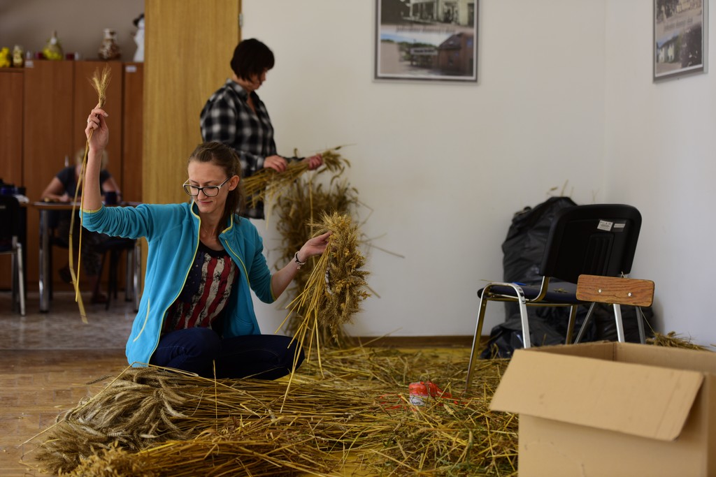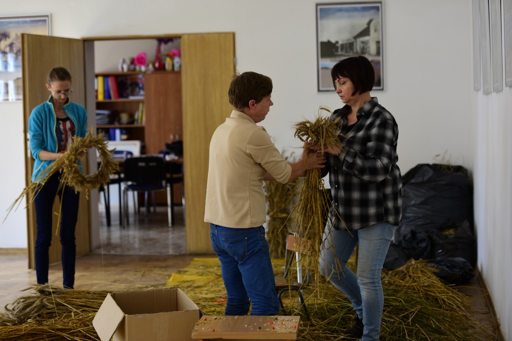 A tymczasem w całej gminie trwają przygotowania do uroczystości. Rolnicy mają obecnie swój czas na żniwa. Pogoda im sprzyja, więc ciężko pracują. My również do nich dołączyliśmy, żeby przygotować piękne dekoracje na scenę, na której odbywać się będą niedzielne uroczystości.