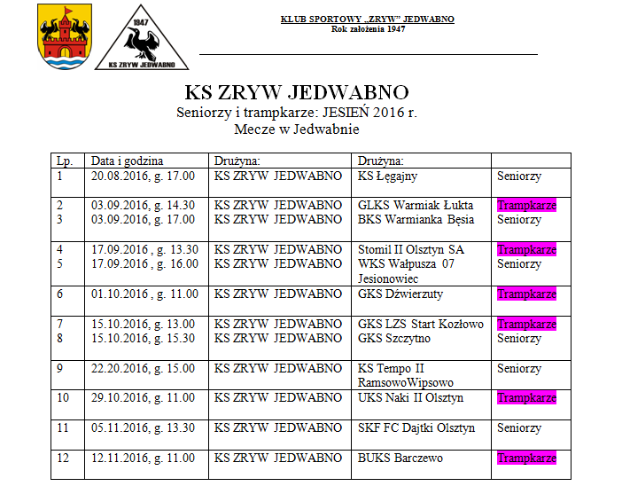 Poniżej przedstawiamy terminarz rozgrywek na stadionie sportowym w Jedwabnie. Zapraszamy wszystkich do uczestnictwa w meczach i wspólnego kibicowania!