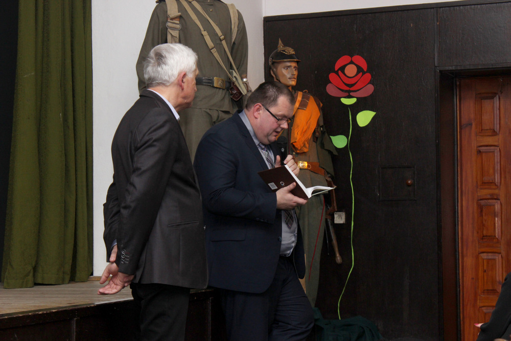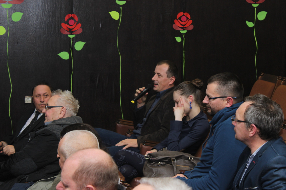 Po projekcji głos zabrał pomysłodawca i reżyser serialu, ks. Przemysław Kawecki, przybliżając licznie zebranym widzom tajniki i problemy ujawniające się podczas produkcji. Następnie Pani Katarzyna Borowska ? Dyrektor Miejsko-Gminnego Ośrodka Kultury w Lidzbarku, przybliżyła dodatkowe korzyści wynikające z realizacji projektu ?Patriotyzm jutra?. Wystąpienia te były wstępem do dalszej dyskusji poprowadzonej przez Pana Sławomira Ambroziaka z widzami, którzy pozostali nieco dłużej na sali widowiskowej. W wyniku rozmów okazało się, iż poza młodzieżą szkolną i mieszkańcami naszej gminy, projekcję filmu zechciało obejrzeć kilku archiwistów, odkrywców i pasjonatów historii oraz poszukiwaczy pozostałości materialnych ukrytych w ziemi, po I Wojnie Światowej.