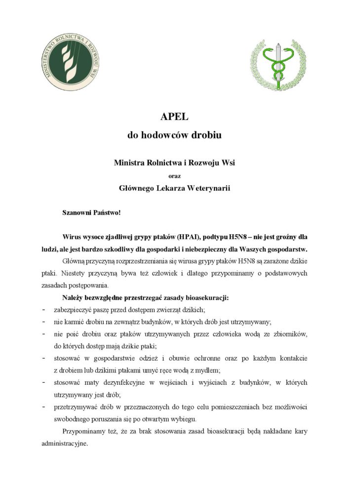 Apel do hodowców drobiu