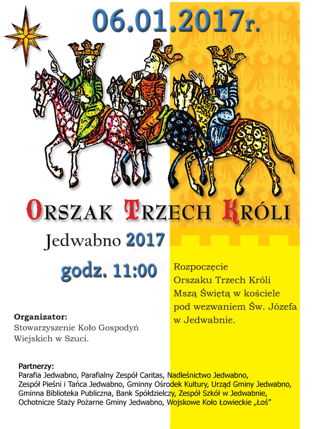 Orszak Trzech Króli po raz czwarty w Jedwabnie, 6 stycznia 2017 r. – Zapraszamy!