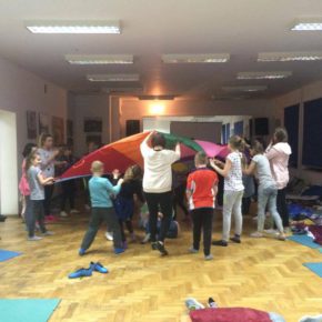 Drugi tydzień ferii zimowych rozpoczął się NOCĄ w Gok-u. Pomysł ten okazał się super sprawą dla dzieciaków i młodzieży. Chętnych było co niemiara. Rozpoczęliśmy nasze ,,Piżamowe Party?? wspólną kolacją, następnie mali i duzi uczestnicy bawili się w różne gry i zabawy z chustą animacyjną i nie tylko.