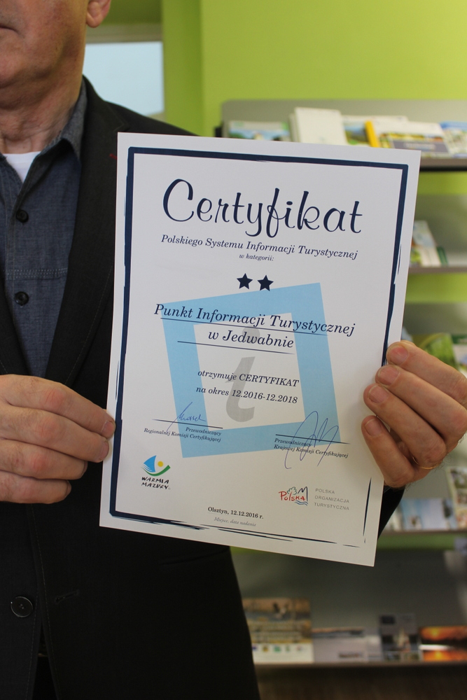 Miło nam poinformować, że Punkt Informacji Turystycznej w Jedwabnie uzyskał ponownie dwie gwiazdki w ramach programu certyfikacji informacji turystycznej w Polsce.