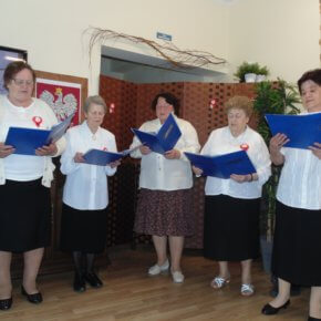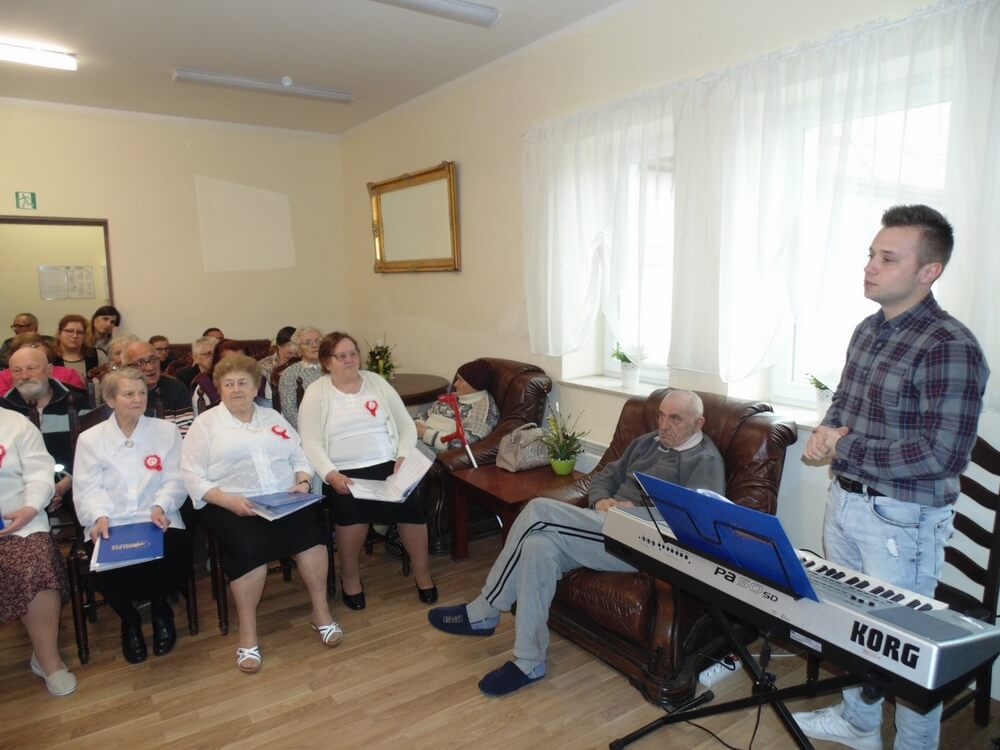 4 maja zorganizowana została akademia upamiętniająca uchwalenie Konstytucji 3 Maja. Uczestnicy Domu obejrzeli reportaż historyczny oraz wysłuchali pieśni patriotycznych w wykonaniu śdsowego zespołu Jedwabki w składzie: Halina Dudzik, Helena Sowińska, Jadwiga Jachna, Zofia Gosik, Ingrida Trzcińska. Zespół wokalny wykonał utwory pt. ?Mazurek 3 Maja?, ?Kwiaty Polskie? i ?Zwycięży Orzeł Biały?. Kolejnym wykonawcą akademii był Waldemar Drozdowski, który zaprezentował utwór pt. ?Biały Krzyż?. Przypomnijmy, że muzyczną oprawą występów zajmuje się w placówce instruktor terapii zajęciowej ? Bartosz Abramski. Wysłuchali też recytacji wiersza pt. ?Gawęda o miłości ziemi ojczystej? Wisławy Szymborskiej w wykonaniu pana Zbyszko Świderskiego.