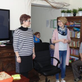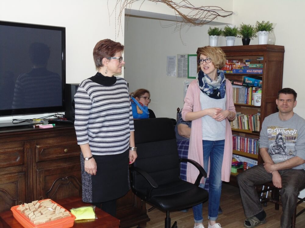 Natomiast 8 maja 2017 roku odbyło się spotkanie z Panią Bożeną Harbaszewską ? wolontariuszką, która prowadziła będzie w ŚDS treningi dotyczące m.in. właściwego odżywiania i nawadniania organizmu, ćwiczenia usprawniające pamięć, koncentrację i rozwój struktur mózgowych, zajęcia z zakresu jogi oraz czerpania energii witalnej.