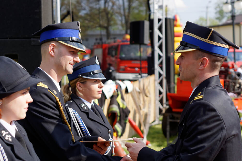 Uroczystości rozpoczęła Msza w Kościele pw. Św. Józefa w Jedwabnie, a następnie korowód ze strażakami na czele dumnie przemaszerował ulicami do Parku w Jedwabnie. Po złożonym meldunku o gotowości do uroczystości i podniesieniu flagi państwowej, nastąpił miły moment dla wielu strażaków, który dla niektórych okazał się być sporym zaskoczeniem. Otóż wielu ze strażaków OSP otrzymało odznaczenia, a pracujący w KP PSP w Szczytnie – awanse w stopniach i na stanowiskach służbowych.