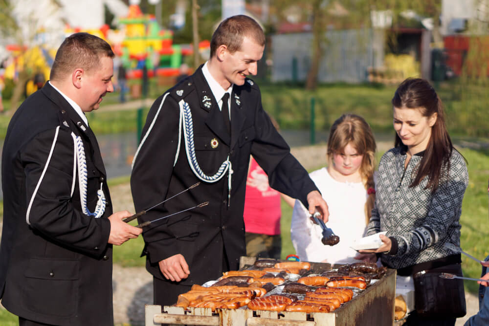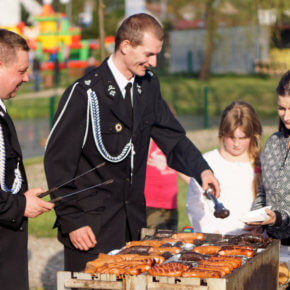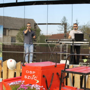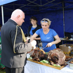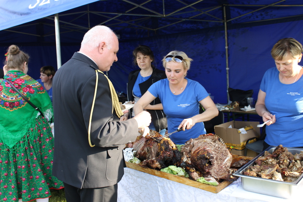 Na placu przy pięknej słonecznej pogodzie zgromadziło się mnóstwo rodzin z dziećmi, na których czekały suto zastawione stoły, a gospodynie z KGW w Szuci i strażacy z Nowego Dworu przygotowali prawdziwą ucztę, serwując bezpłatnie m. in. pieczonego dzika, chleb ze smalcem, grochówkę, domowe sery i dania z grilla.