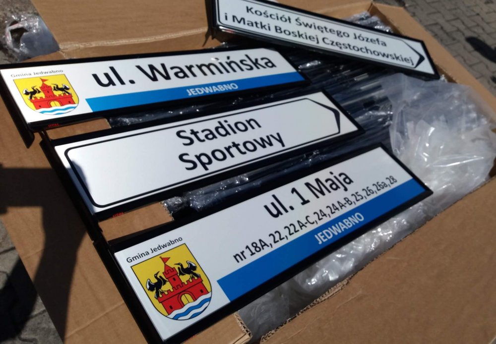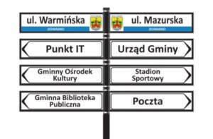 W celu poprawy wizerunkowej miejscowości w gminie Jedwabno przystąpiliśmy do wykonania oznakowania kierunkowego do najważniejszych punktów w miejscowościach. Prace rozpoczęliśmy od Jedwabna, gdzie już w czerwcu ustawionych zostanie pięć słupów z tablicami kierunkowymi dla pieszych i kierowców.