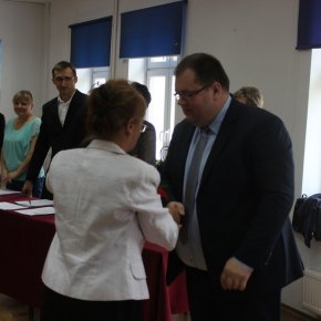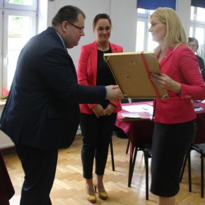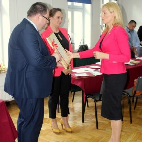 W imieniu Marszałka Województwa Pani Sylwia Jaskulska pogratulowała działań oraz wręczyła podziękowanie dla Nadleśniczego Nadleśnictwa Jedwabno Pana Marka Trędowskiego za organizację „X Regionalnej Wystawy Przyrodniczo-Łowieckiej”.
