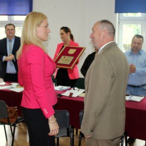 Pani Sylwia Jaskulska – Członek Zarządu Województwa Warmińsko-Mazurskiego – w imieniu Marszałka Województwa wręczyła dla Wójta Gminy Jedwabno wyróżnienie „Złote Runo”, przyznane dla Gminy Jedwabno za zajęcie II miejsca w rankingu wydatków majątkowych na jednego mieszkańca. Ponadto poinformowała zebranych o pozytywnym sfinalizowaniu uzgodnień dotyczących remontu drogi krajowej Jedwabno – Rekownica, dofinansowaniu projektów Sołectwa Piduń i Sołectwa Rekownica w ramach Programu Odnowy Wsi z PROW 2014-2020. Przekazała również umowę na realizację projektu „Przebudowa drogi powiatowej 1464N Olsztyn – Prejłowo – Grzegrzółki – Grom – Dzierzki (dr. kraj. Nr 58)”, który uzyskał dofinansowanie z Programu Rozwoju Obszarów Wiejskich na lata 2014-2020. Pani Marszałek poinformowała zabranych o bieżącej działalności Departamentów jej podległych w Urzędzie Marszałkowskim Województwa Warmińsko-Mazurskiego, w tym informacje dotyczące działalności Województwa w zakresie realizacji projektu dotyczącego budowy szerokopasmowego internetu w regionie.