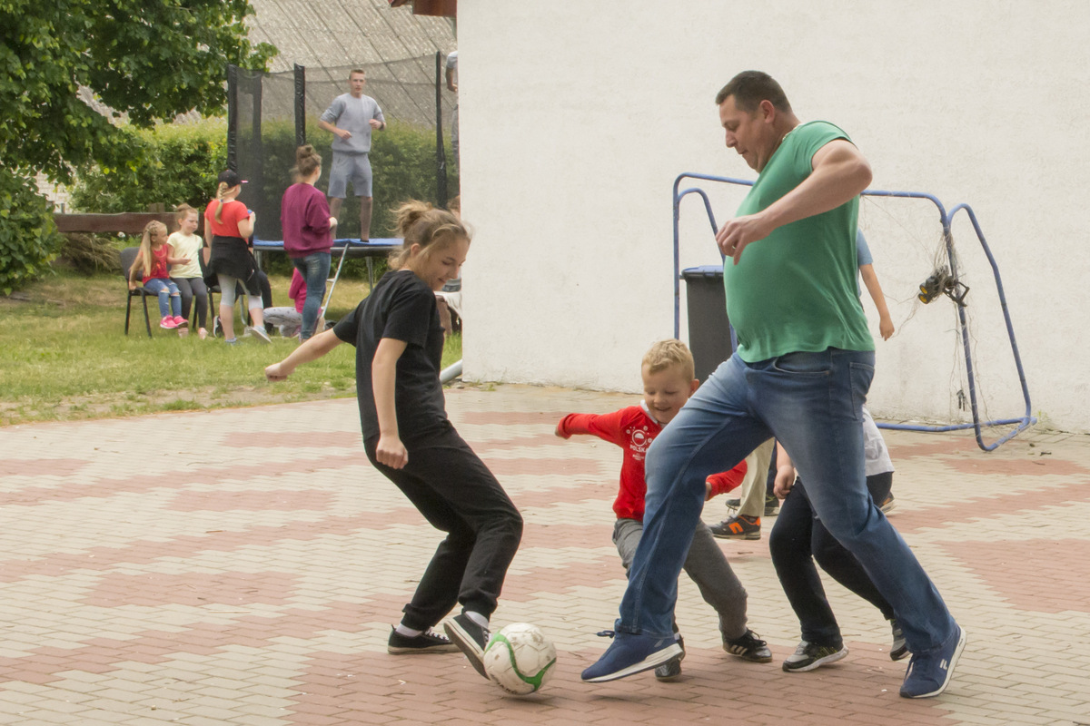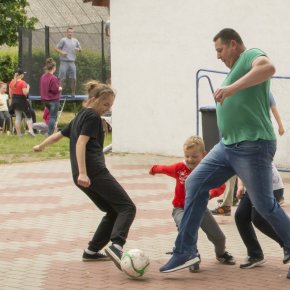 W programie znalazły się gry i zabawy sportowe oraz mecze w piłkę nożną, siatkową i w dwa ognie pomiędzy dziećmi a rodzicami. Nie zabrakło pokazu w wykonaniu jednostki OSP Szuć, po którym dzieci mogły własnymi siłami gasić kontrolowany pożar. Do woli można było skakać na bardzo dużej trampolinie. W przerwach między rozgrywkami uczestnicy pikniku rodzinnego posilali się słodyczami, pysznymi goframi, ciastami oraz pieczoną na ruszcie kiełbaską.
