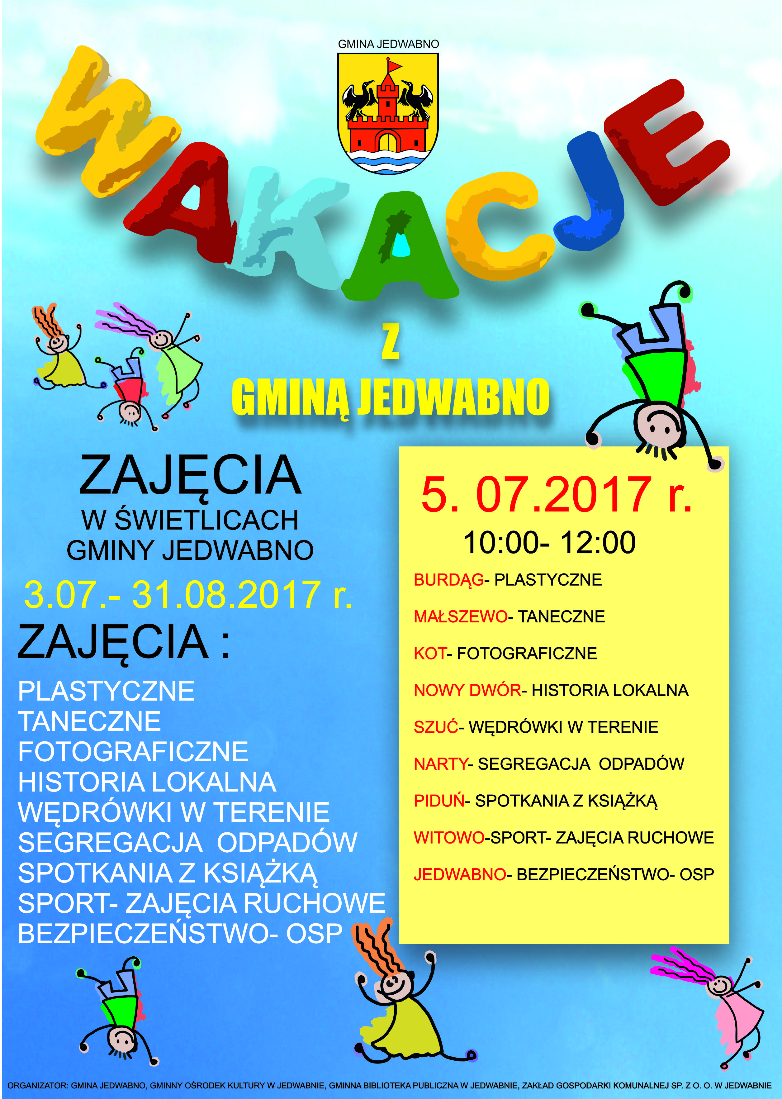 W miesiącach lipiec – sierpień 2017 r. Gmina Jedwabno będzie realizatorem akcji „Wakacje z Gminą Jedwabno”.