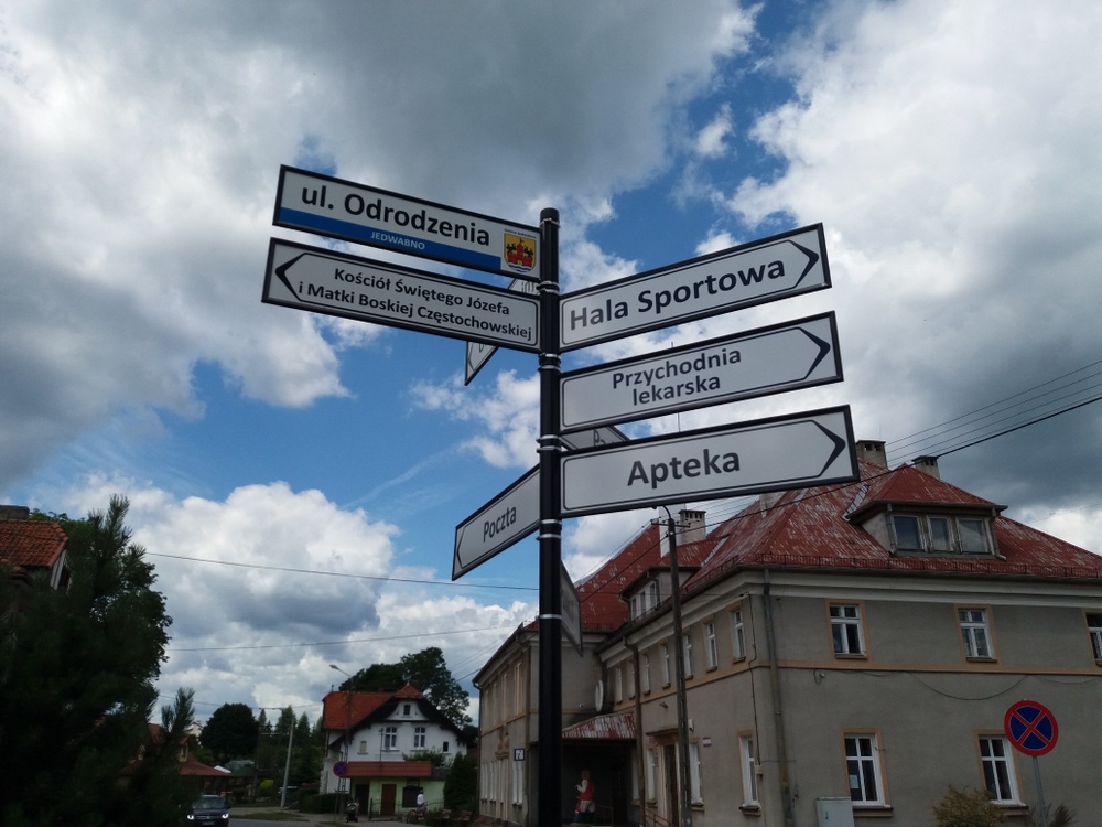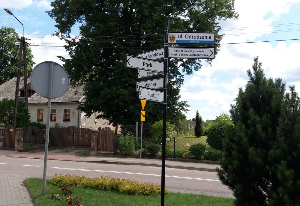 Prace rozpoczęliśmy od Jedwabna, gdzie dzisiaj zakończyliśmy montaż pierwszych trzech słupów z tablicami. Prezentują się znakomicie, a co najważniejsze będą pomocne zarówno pieszym, jak i kierowcom!