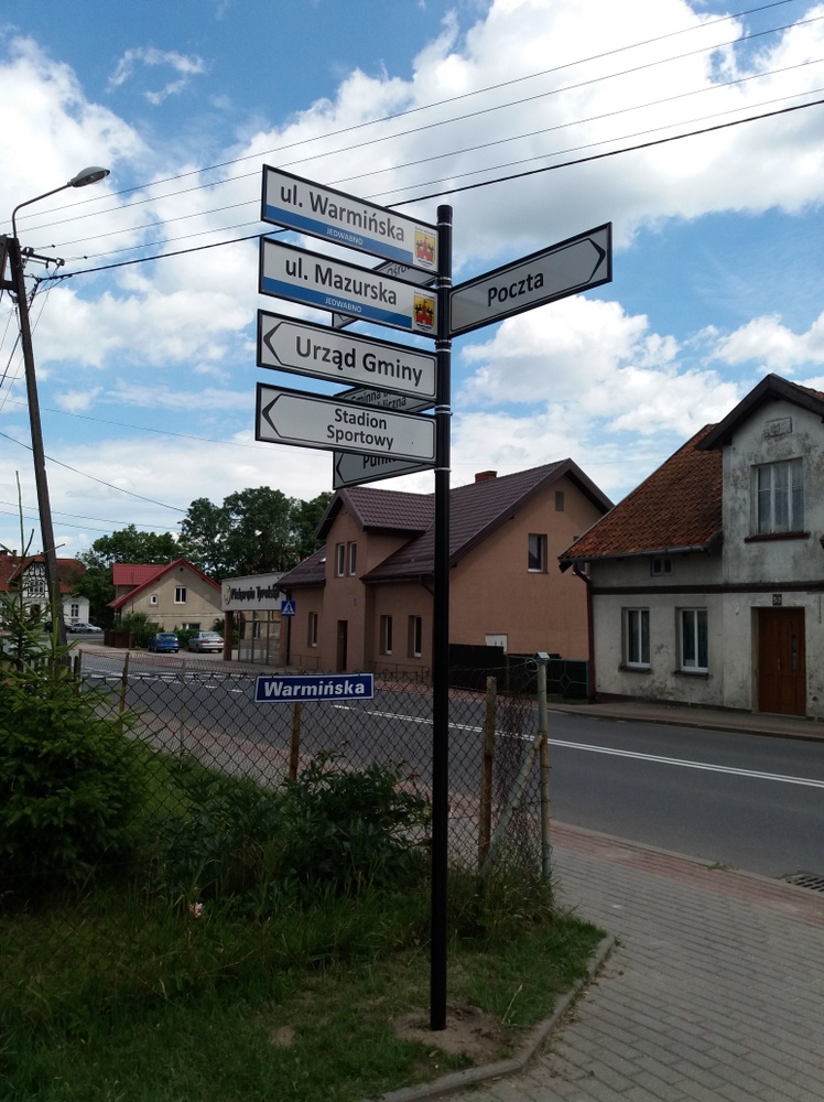 W celu poprawy wizerunkowej miejscowości w gminie Jedwabno przystąpiliśmy do wykonania oznakowania kierunkowego do najważniejszych punktów w miejscowościach.