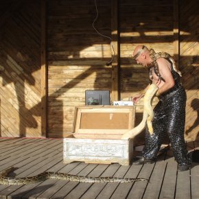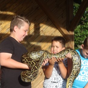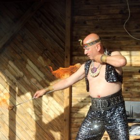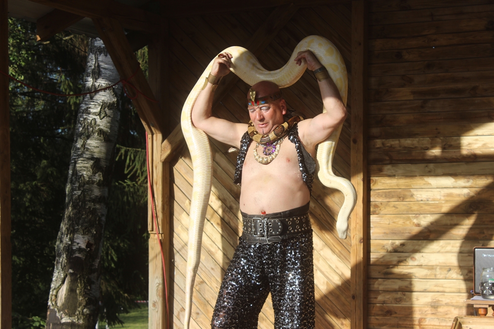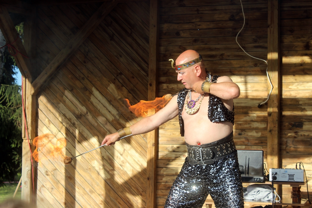 Ogromne emocje wzbudził pokaz Fakira Ramadesa z ogniem i trzema wężami oraz bardzo ciekawe opowieści o wężach. Ochotnicy, którzy odważyli się – mogli dotknąć węży. Następnie odbył się wyjątkowy pokaz strażacki OSP Nowy Dwór i OSP Jedwabno. Dlaczego wyjątkowy? Nasi strażacy zaimprowizowali akcję ratowania człowieka uwięzionego w samochodzie. Uczestnicy Festynu mieli okazję zobaczyć działania OSP w akcji: wycięcie dachu w samochodzie, wybicie szyb, wyciągnięcie rannego na noszach. Wszystko to wzbudziło wiele emocji wśród widowni. Na najmłodszych czekała natomiast instruktor GOK w Jedwabnie, Pani Beata Jankowska, która wszystkim chętnym malowała twarze.
