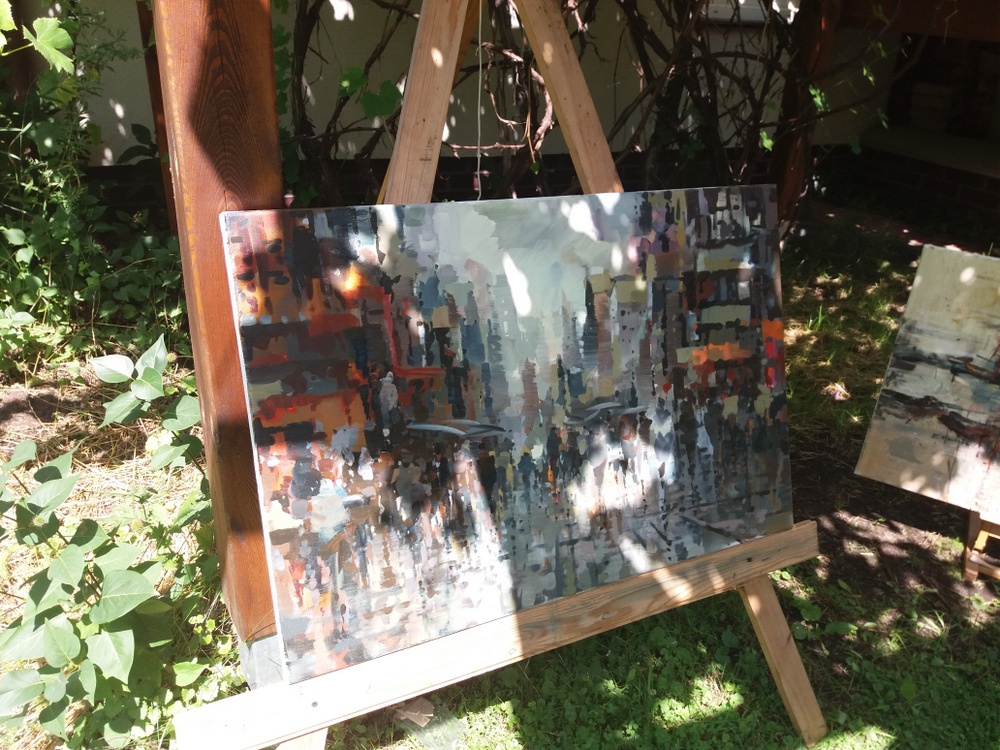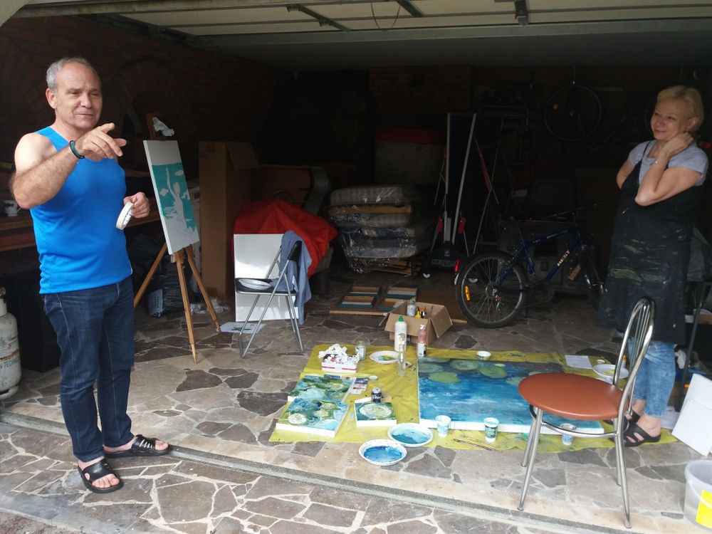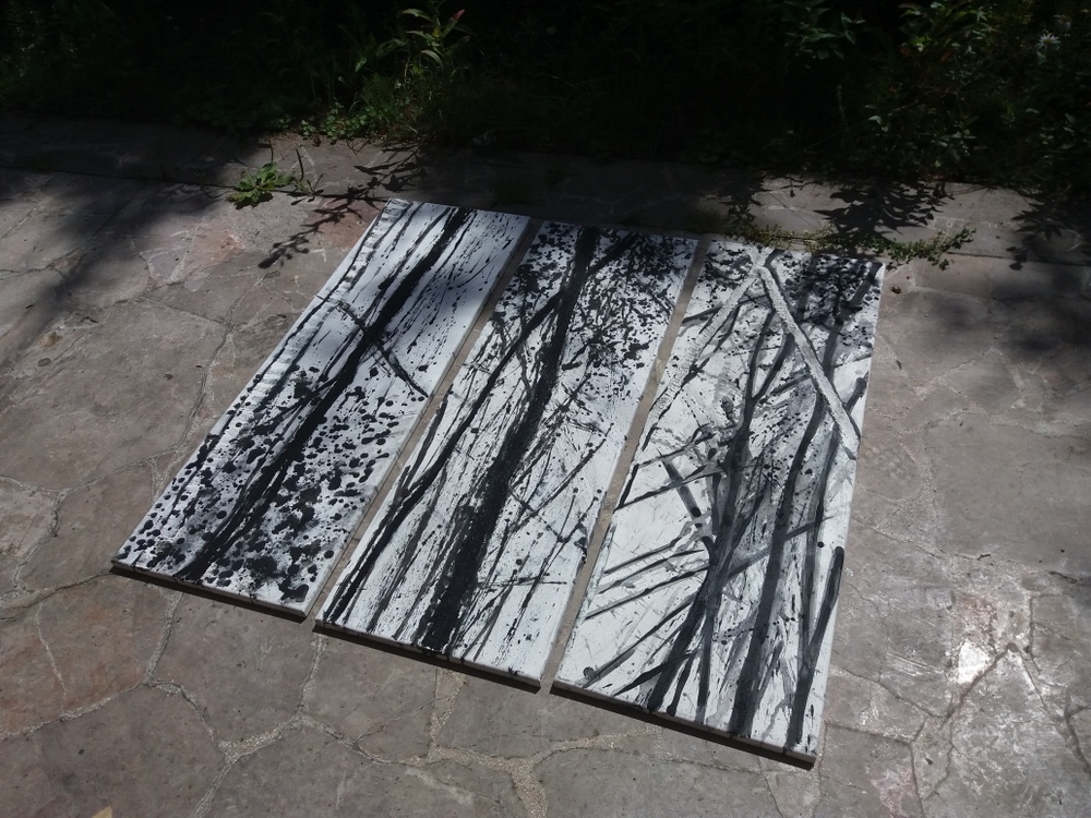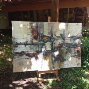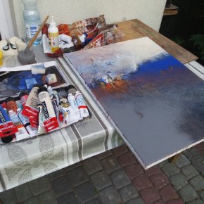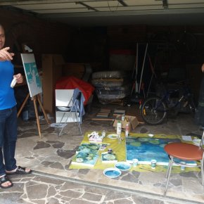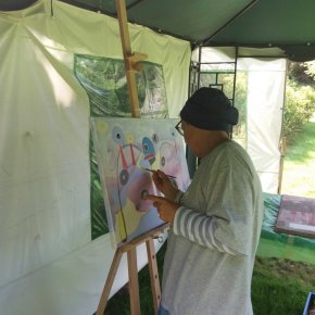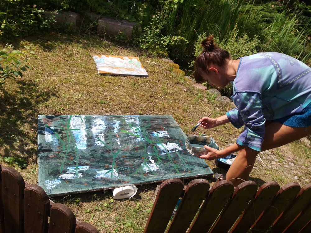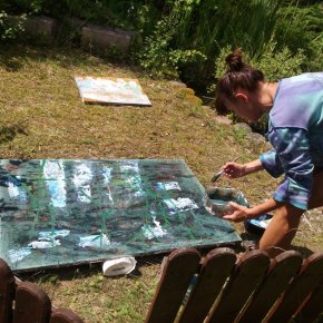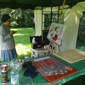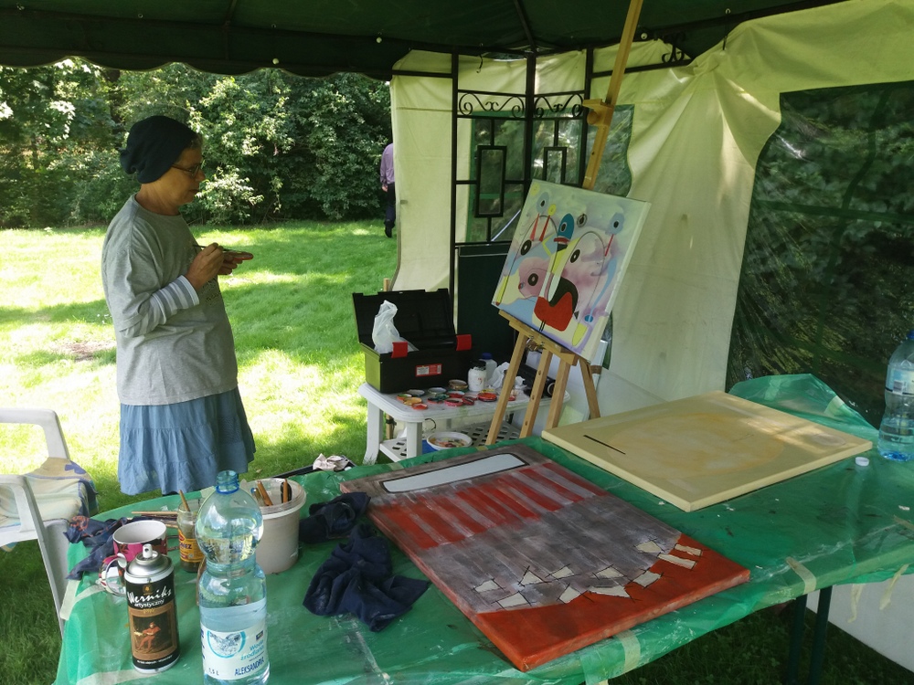 Kolejny raz podpatrzeliśmy artystów przy pracy nad obrazami, które powstają w ramach X Międzynarodowych Spotkań Artystycznych „Czarny Piec 2017”. Obrazy te wykonuje druga grupa artystów na terenie gminy Jedwabno, stacjonująca w Czarnym Piecu. Prace nie są jeszcze ukończone, artyści pracować będą nad nimi do 20 lipca 2017 r. – kiedy to właśnie w tej miejscowości odbędzie się wystawa poplenerowa.