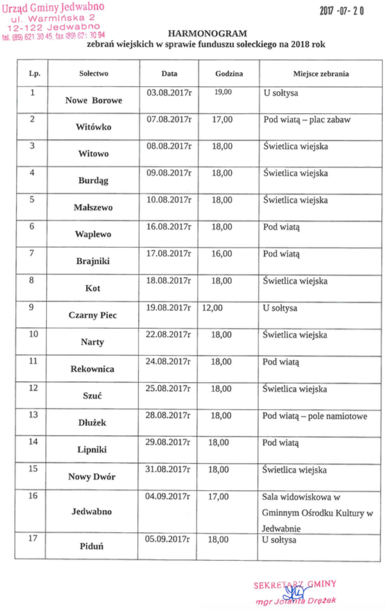 3. Zebrania wiejskie w sprawie funduszu sołeckiego na 2018 r. trwają – przypominamy harmonogram