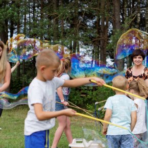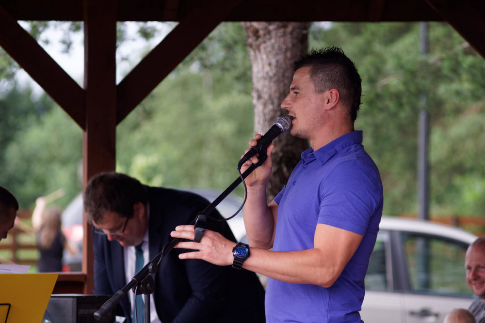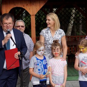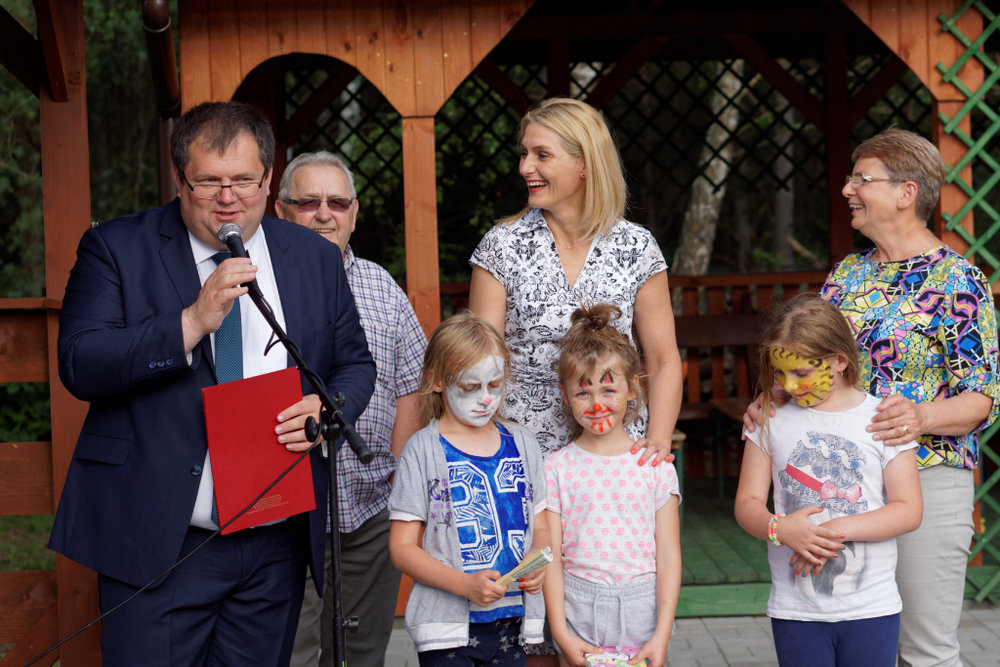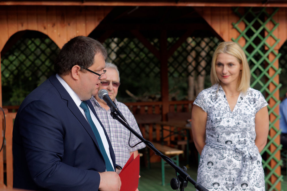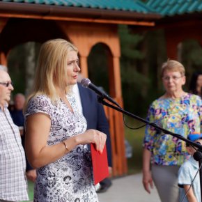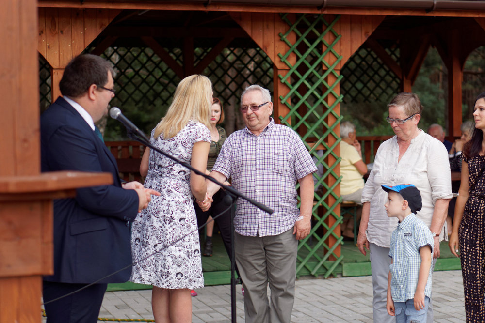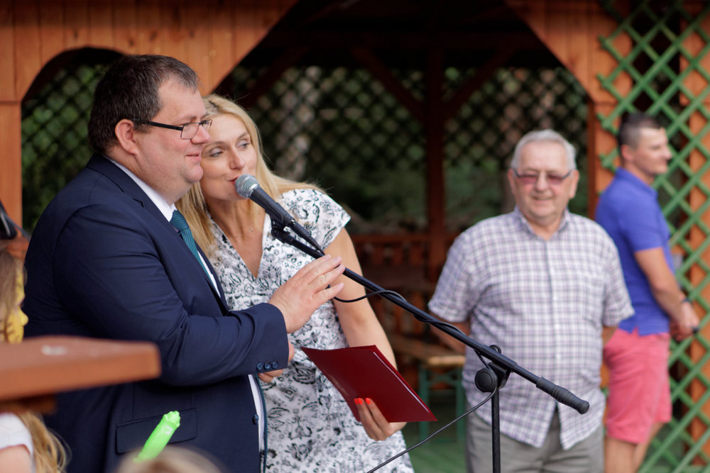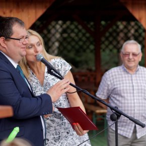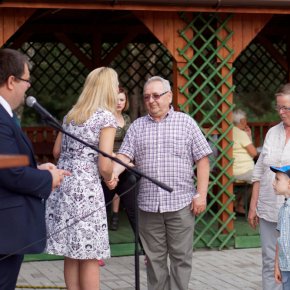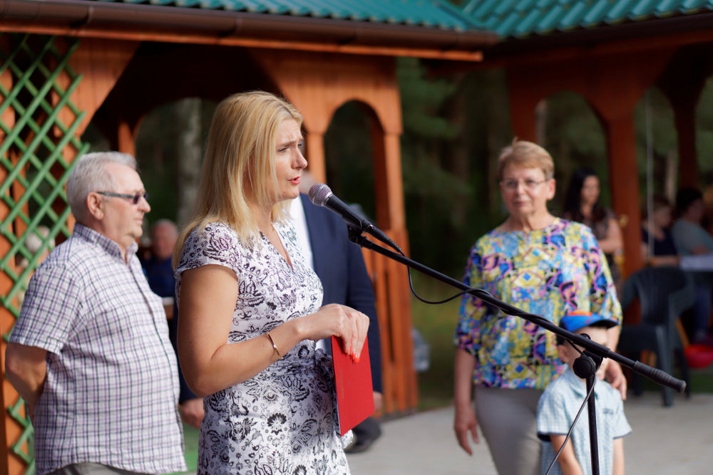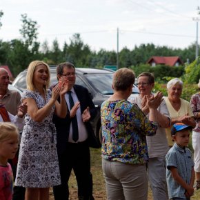 Na uroczystości gościliśmy również przedstawicieli wsi Wojciechy w gminie Bartoszyce, w ramach realizacji wspólnego zadania publicznego z zakresu aktywizacji społeczności lokalnych na obszarach wiejskich pt. „Wspólnie działamy- więcej wygramy”, dofinansowanego ze środków Samorządu Województwa Warmińsko-Mazurskiego. Goście zaprezentowali swoje umiejętności artystyczno-wokalne, czym uświetnili lokalny festyn.