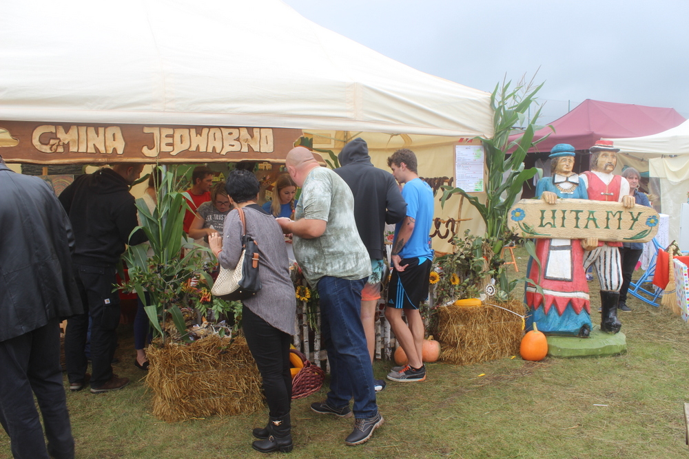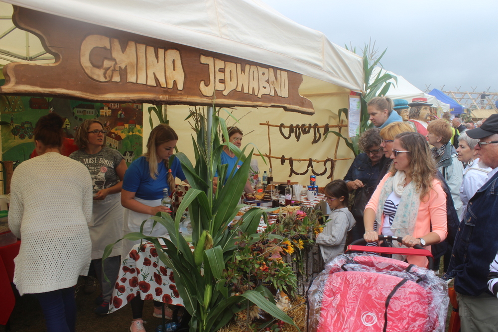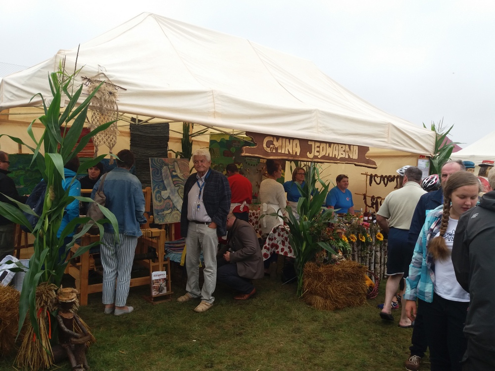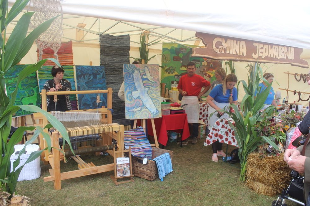 Stoisko Gminy Jedwabno składało się z dwóch części. Część ku z domowym jadłem nawiązującym do jadłopisu dawnego regionu Warmii i Mazur oraz warsztat tkacki. Warsztat był aktywną częścią stoiska przedstawiającą wygasające rzemiosło tkackie, mające miejsce na mazurskiej wsi. Prowadziła je Pani Beata Jankowska, instruktor, plastyk z Gminnego Ośrodka Kultury w Jedwabnie. Główna myśl przewodnia to OCALIĆ OD ZAPOMNIENIA i iść śladami Barbary Hulanickiej, dzięki której tkanina warmińsko-mazurska i warsztat tkacki nabrały ogromnego znaczenia na Maurach oraz w Polsce i na świecie. Na stoisku można było zobaczyć jak tkano tzw. Mazurskie Szmaciaki. Krosna wykonał twórca ludowy Stanisław Bałdyga z Mazuchówki pod Giżyckiem, natomiast tkactwa uczyła Panią Beatę jego żona Anna Bałdyga, znana artystka ludowa, mistrzyni tkania. Do tego tłem pracowni tkackiej były obrazy Pani Beaty Jankowskiej, inspirowane mazurską przyrodą.