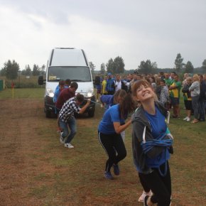 Natomiast drużyna sportowa, pomimo padającego deszczu, doskonale bawiła się podczas ciekawych konkurencji, przygotowanych przez Powiatowe Centrum Sportu.