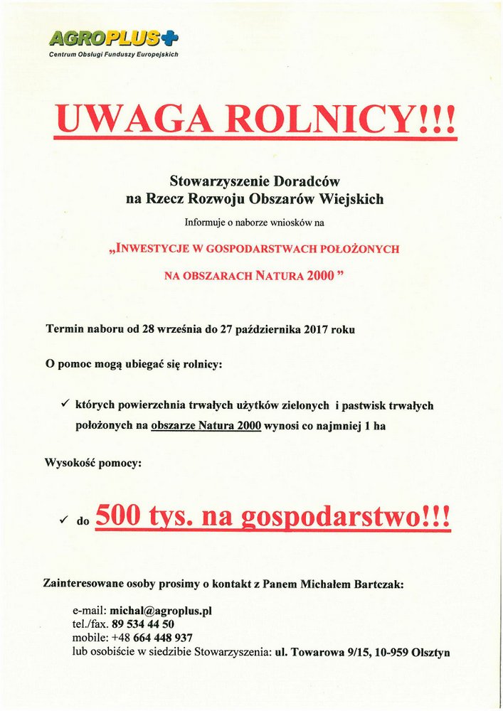 W związku z ogłoszonym naborem wniosków w ramach poddziałania 4.1. „Inwestycje w gospodarstwach położonych na obszarach Natura 2000” objętego Programem Rozwoju Obszarów Wiejskich 2014-2020, prowadzonym przez Agencję Restrukturyzacji i Modernizacji Rolnictwa, istnieje możliwość otrzymania dofinansowania przez rolników prowadzących gospodarstwa rolne na obszarze Natura 2000.
