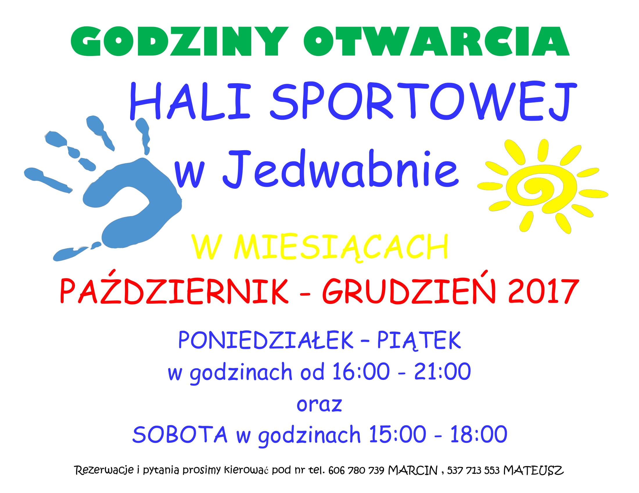Zajęcia na Hali Sportowej w Jedwabnie w miesiącu grudniu 2017 r. – aktualny grafik