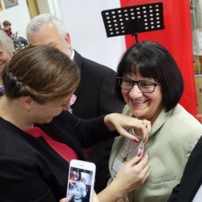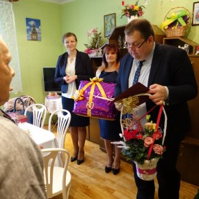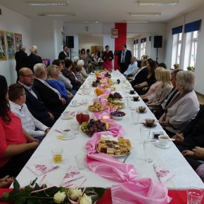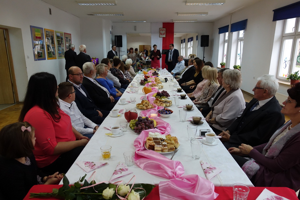 Były kwiaty, gratulacje, życzenia zdrowia, radości i pełni sił na dalsze wspólne lata. Przy słodkim poczęstunku wspólnie odśpiewano „Sto lat”. Miłym akcentem była część artystyczna, przygotowana specjalnie na tę uroczystość przez Gminny Ośrodek Kultury w Jedwabnie.