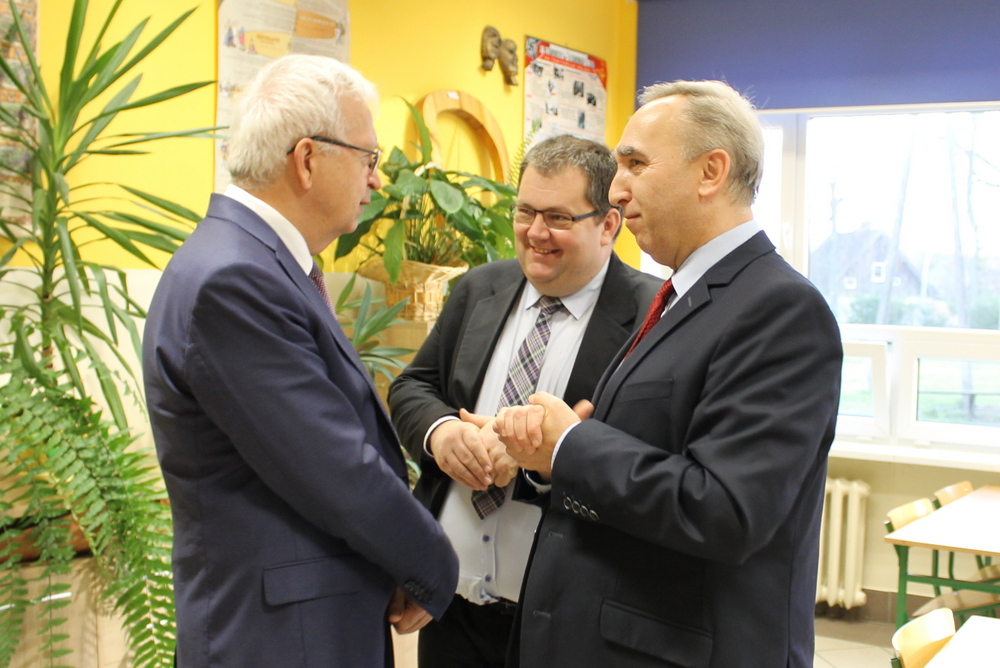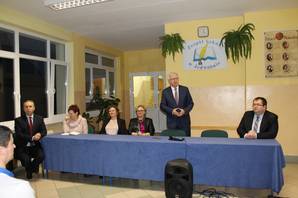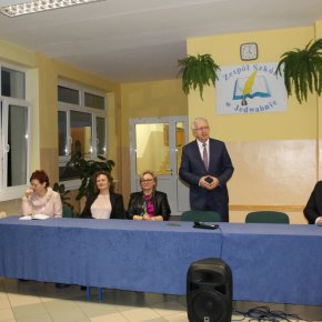Kurator wraz z Wójtem odwiedził Zespół Szkół w Jedwabnie, gdzie odbyło się zebranie z Dyrektorem Szkoły i nauczycielami, jak również uczniami i rodzicami. Celem wizyty kuratora było sprawdzenie przygotowania szkoły do nowej sytuacji w systemie edukacji.