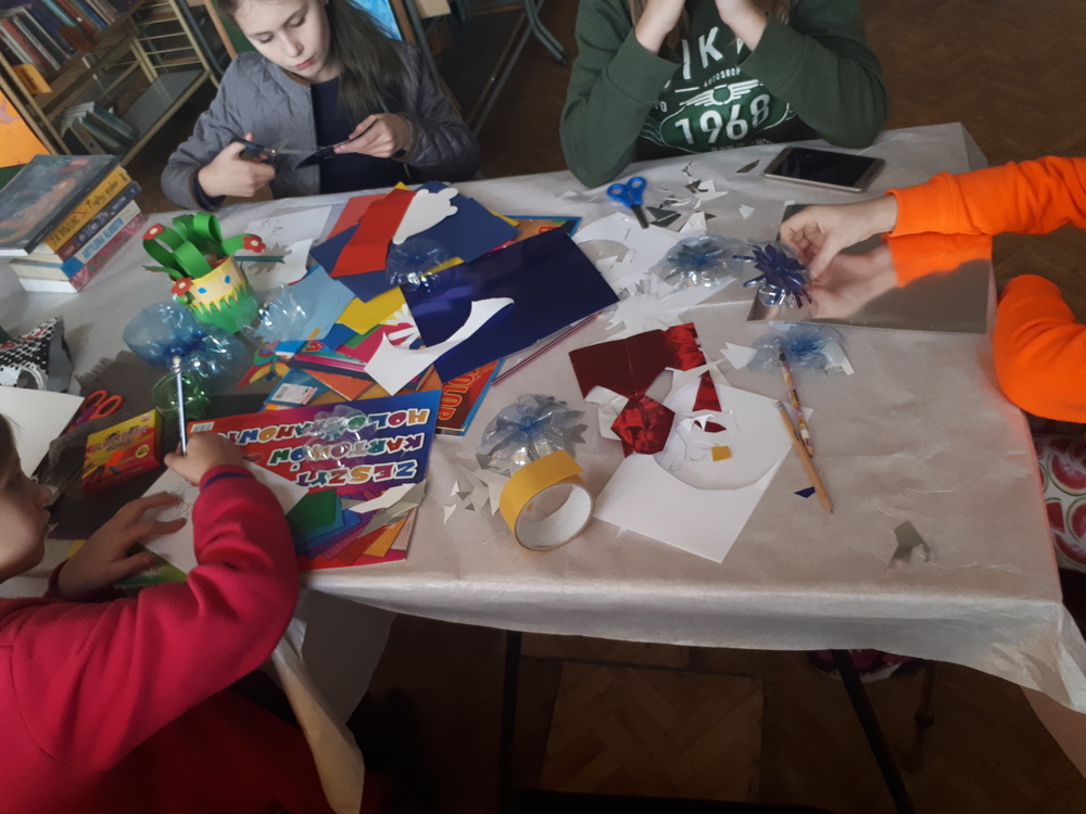 Młodzi twórcy w ostatnim czasie przygotowywali dekorację świąteczną, która upiększyła pomieszczenie biblioteki. Serdecznie zapraszamy na spotkania w każdą sobotę w godzinach 12:00 – 14:00.