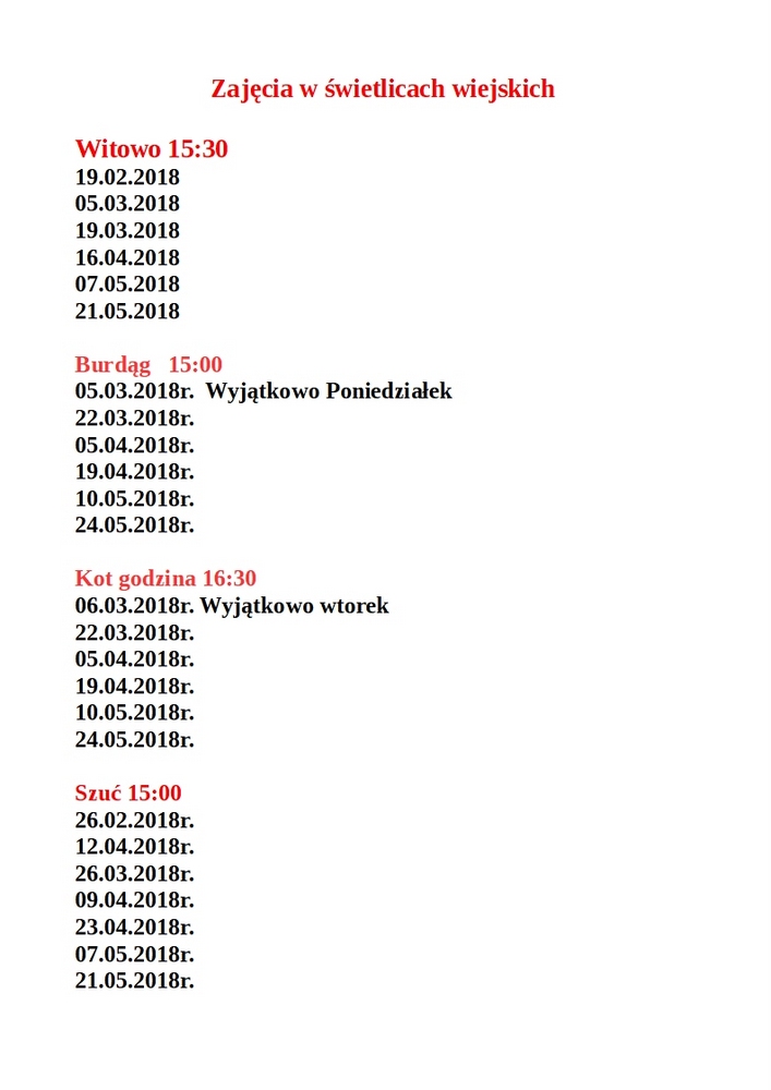Cieszy nas współpraca z sołectwami i rodzicami, którzy tak bardzo angażują się w rozwój życia społecznego w swoich miejscowościach. Dokładają wszelkich starań, aby te zajęcia mogły się odbyć.