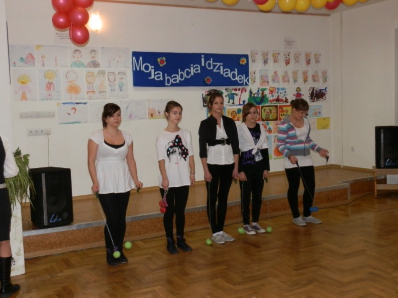 W Gminnym Ośrodku Kultury w Jedwabnie uroczystość z okazji dnia Babci i Dziadka odbyła sie w sobotę 21.01.2012 roku. Spotkanie otworzył dyrektor GOK Jerzy Pałasz witając przybyłych gości i składając im życzenia. Na scenie zaprezentowały się przedszkolaki z grupy „Jagódki”, której opiekunem jest Pani Sabina Marciniak, mali tancerze trenowani przez Panią BarbaręŻebrowską, grupa pracująca pod opieką Pani Mirosławy Zakrzewskiej, „dzieciaki kociaki” pracujące z Panią Klaudią Piersa oraz zespół wokalny „BEZ NAZWY”, którego instruktorem jest Jerzy Pałasz. Po części słowno-muzycznej uczestnicy spotkania udali się na słodki poczęstunek do sali na dole, gdzie czas swoim śpiewem umilał im dyrektor GOKu przy akompaniamencie grającego na akordeonie Pana Zdzisława Pszczółkowskiego. Swój program przybyłym gościom zaprezentowała także młodsza grupa Teatru Ognia „Cienie”.